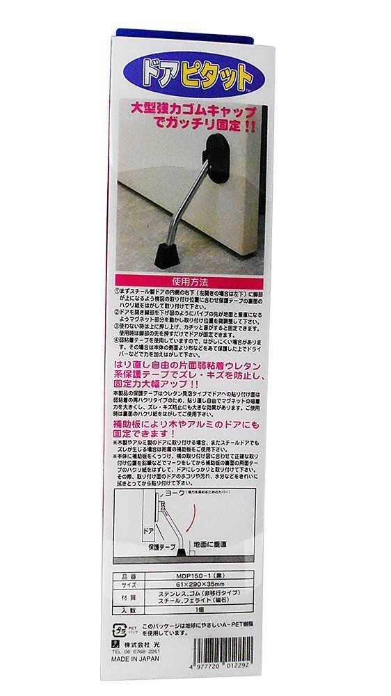 【迅速発送】光 マグネット式ドアストッパー黒 ストロング MDP150-1 幅61ミリ×高さ290ミリ×奥行き35ミリ