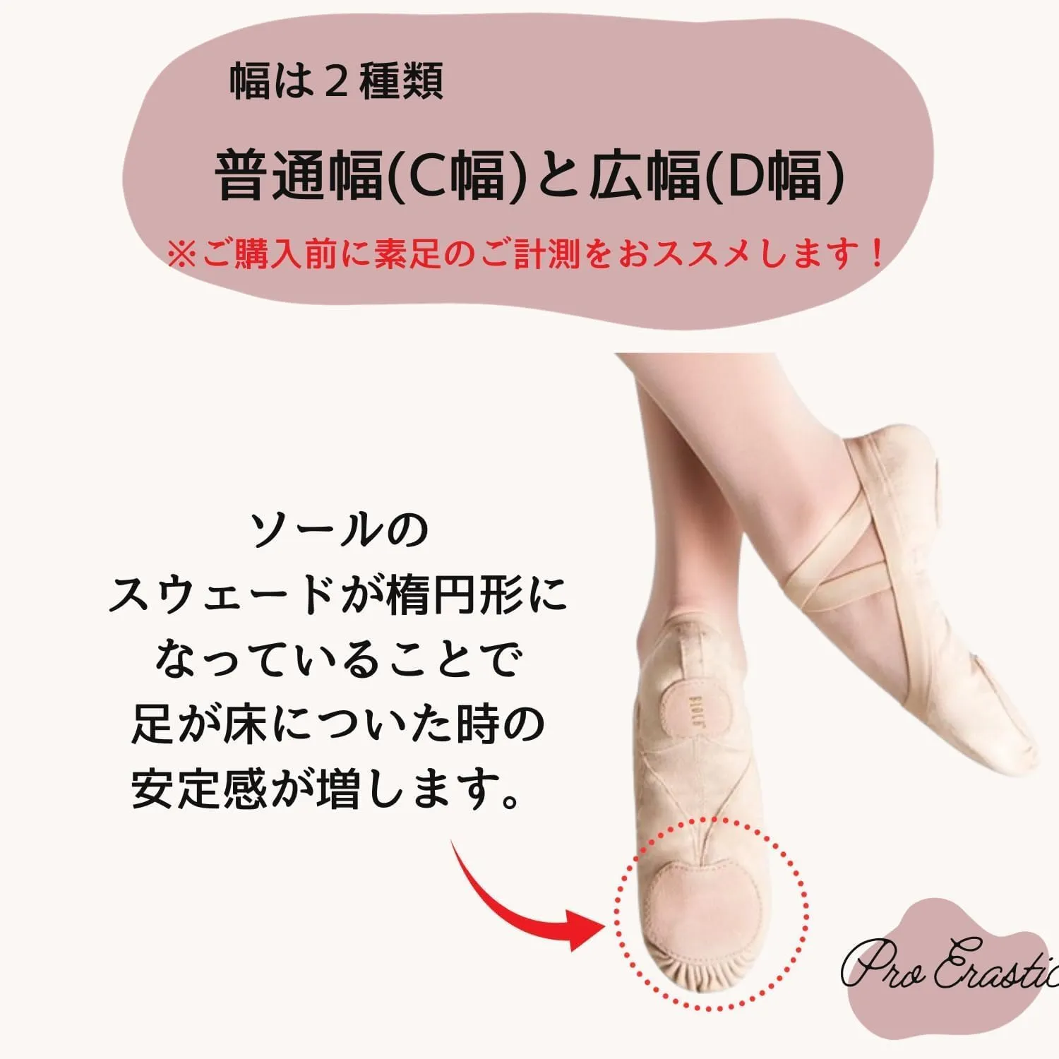 細幅さんには向きませんが、 普通幅~広幅さんに 今一番お試しいただきたいバレエシューズです。C幅=普通幅 D幅=広幅