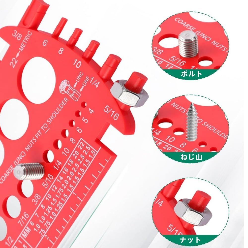 ナットボルトねじゲージ ネジナット測定ゲージ 高精度 測定 ボルトナットねじサイズチェッカー プラスチック製 インチ ミリ センチ
