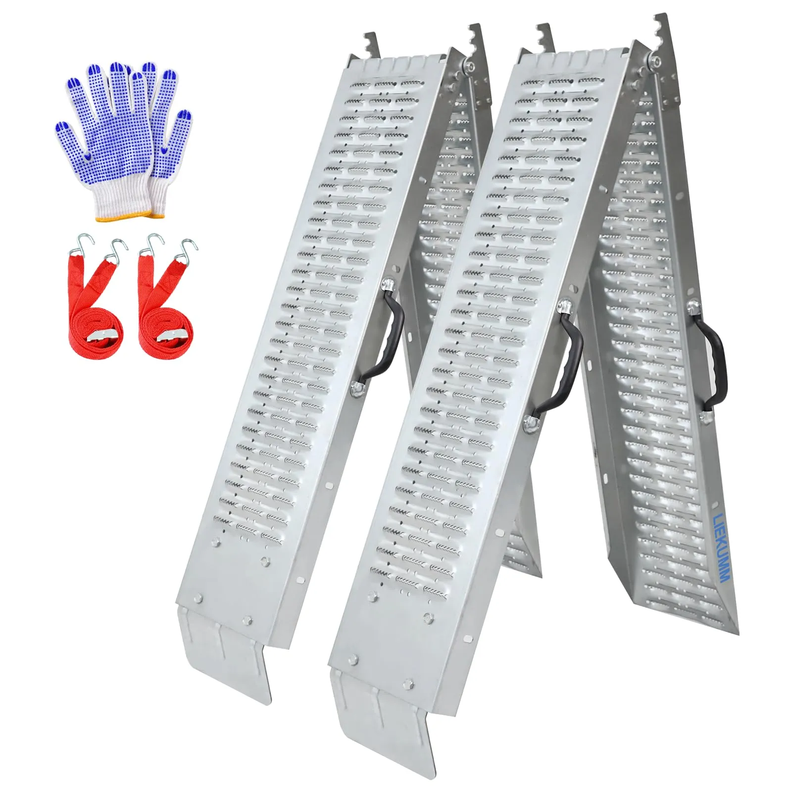 新品 LIEKUMM ラダーレール 長さ188cm 折畳み バイクスロープ 耐荷重400kg バイクラダーレール 手袋付き 貨物運搬、バイク積載用スロープ トラックローディング スチール製 二本セット