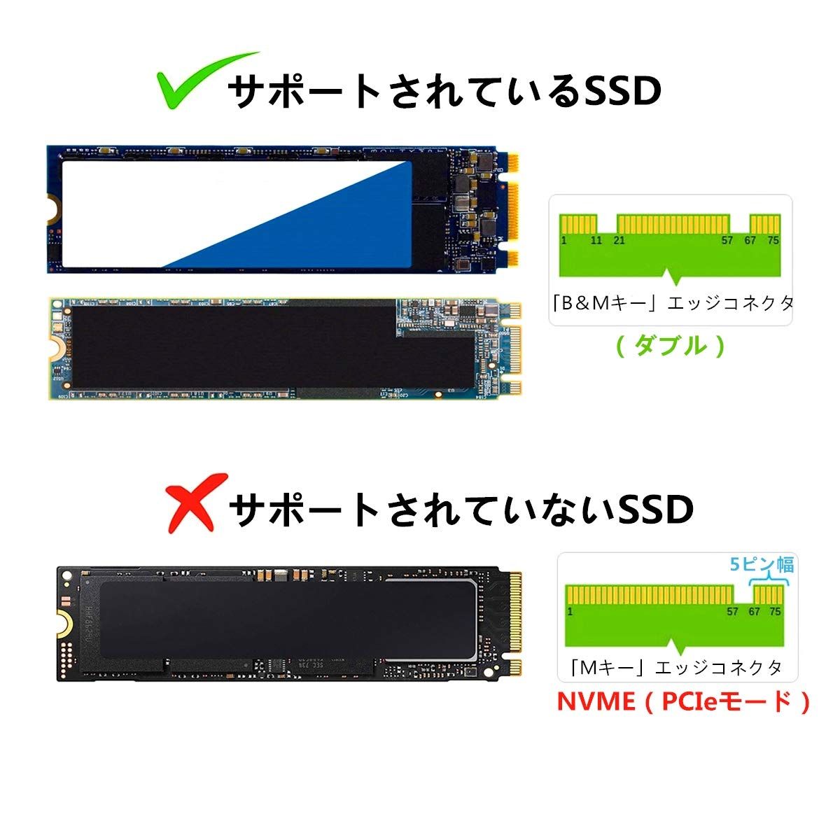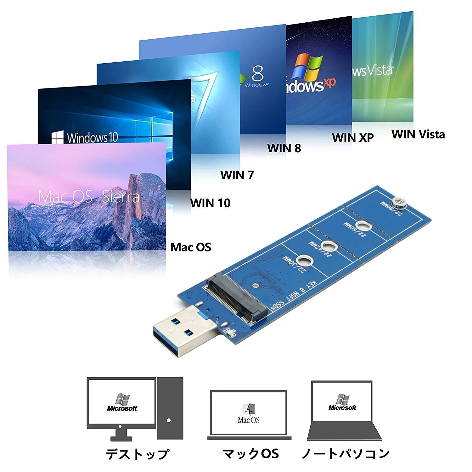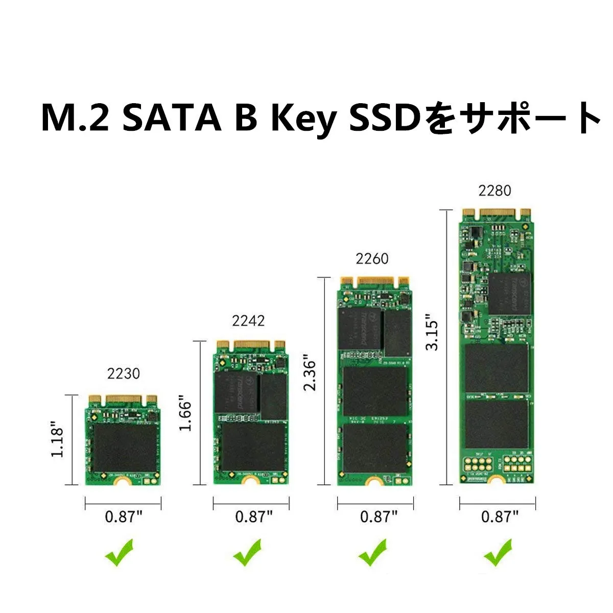 サポートm.2キーB、B + Mタイプ,サポートm.2 ssdサイズ:22 * 30、22 * 42、22 * 60、22 * 80。