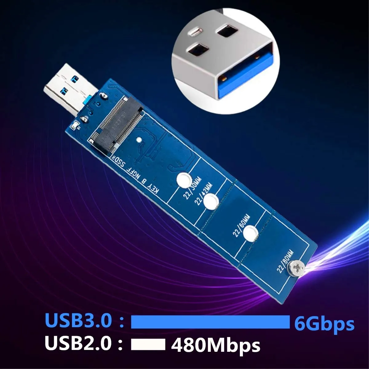 このアダプタを使用すると、NGFF M.2 BキーSSDをUSB 3.0インターフェイスに変換し、貴重なデータを永続的に保存できます。