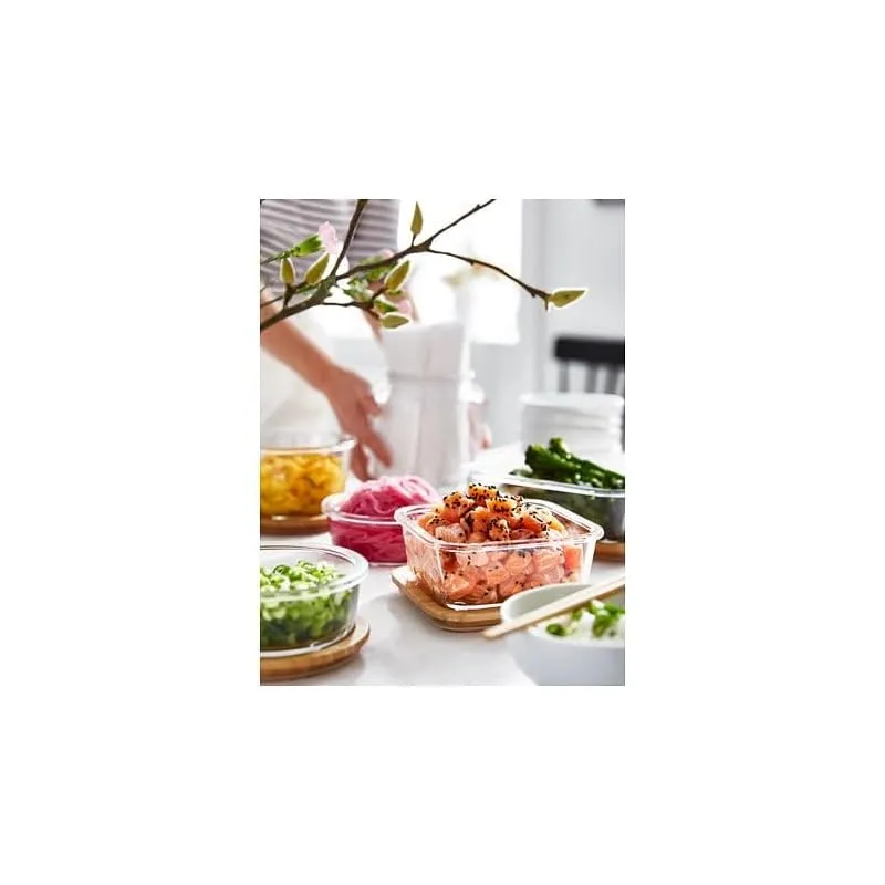【迅速発送】IKEA/イケア IKEA 365+:保存容器 ふた付き15x15x7cm ガラス/竹 (692.691.14) 0