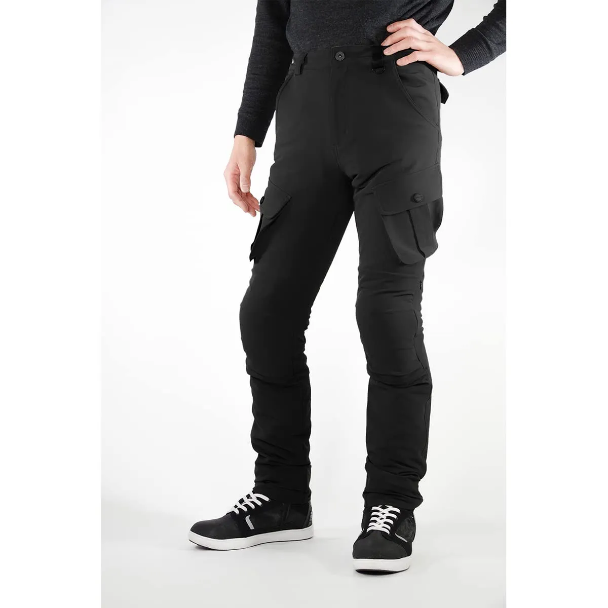 撥水性、通気性、伸縮性のある生地を使用した、速乾性のあるカーゴパンツ。膝にはCE規格レベル2のソフトプロテクターを標準装備。