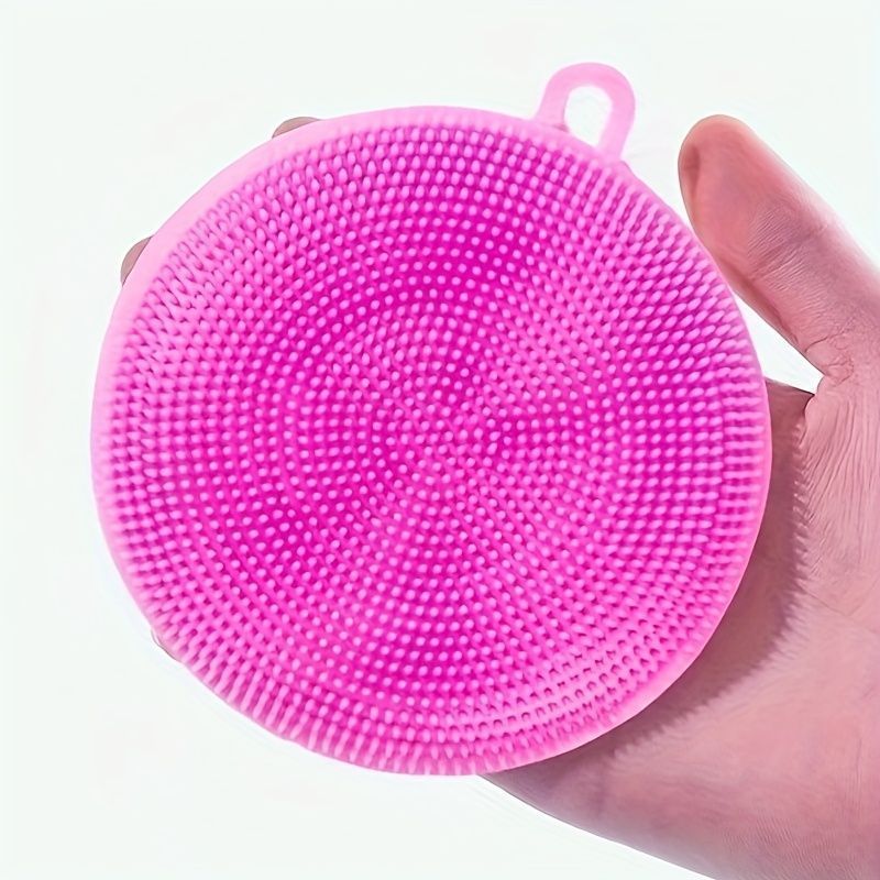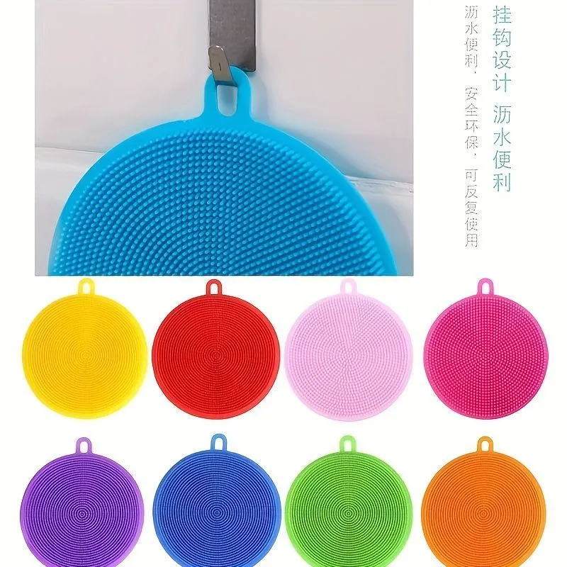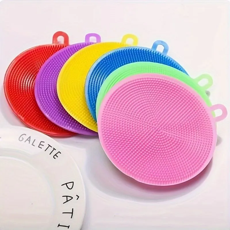 「在庫処分 大特価」3個入り断熱性と除染機能を備えたゴム製キッチン掃除ブラシ。食器、果物、野菜の洗浄に多機能。円形形状で、柔らかなゴム製の布を使用しています。