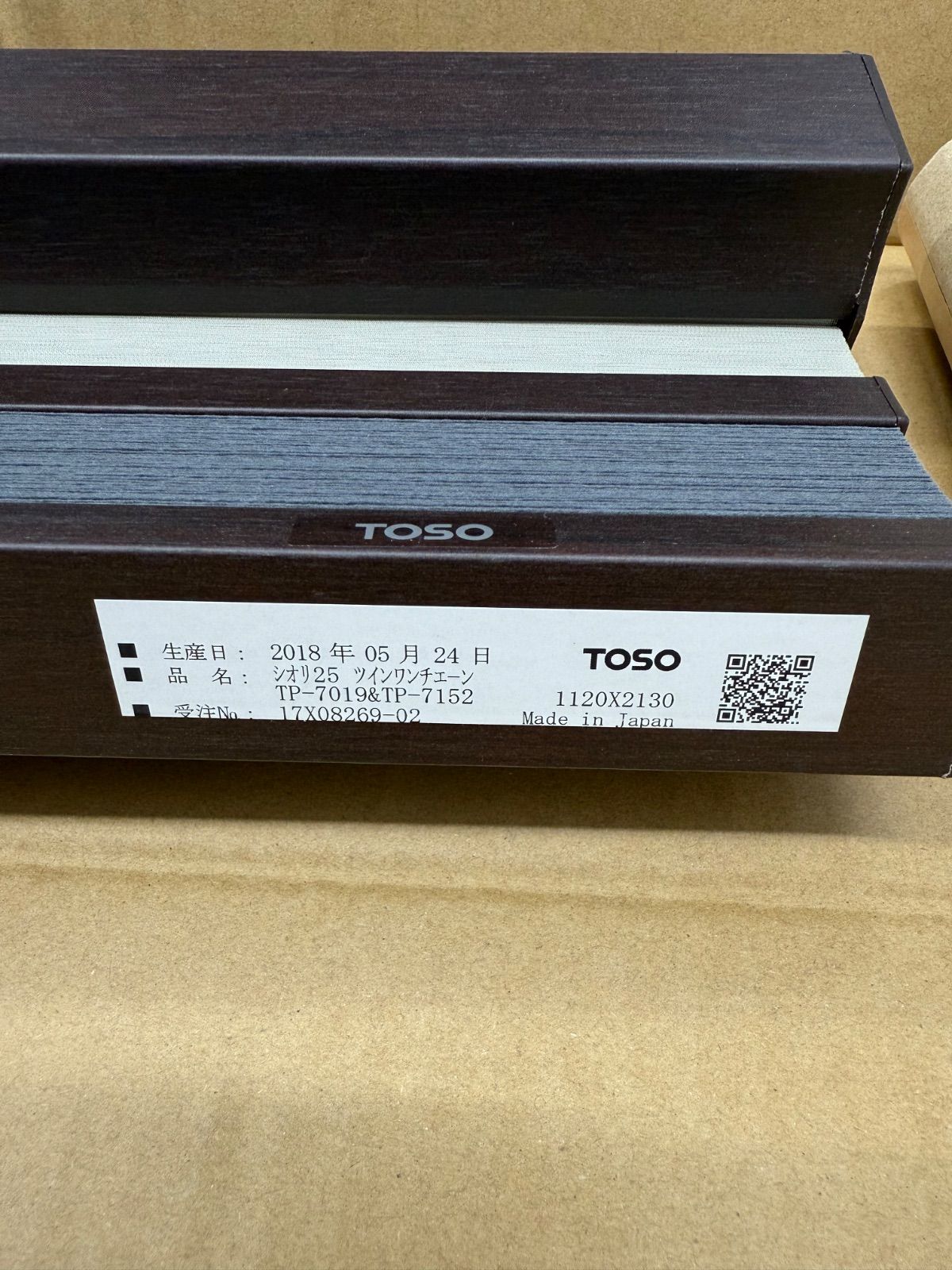 TOSO プリーツスクリーン ツインタイプ 上部:ハルカTP7152,TP8133(ライトベージュ)下部:葉月TP7019,TP8044(アッシュブラック)ワンチェーン式