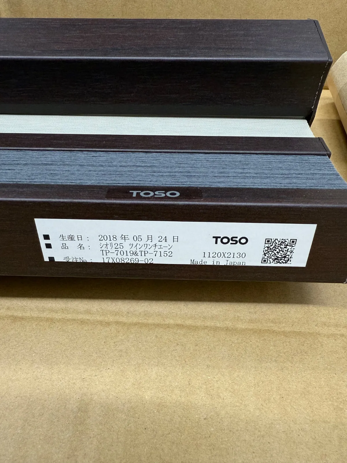 9. 和モダンTOSO プリーツスクリーン ツインタイプ ワンチェーン式 上:TP7152 / TP8133(ライトベージュ) 下:TP7019 / TP8044(アッシュブラック) 木目ダーク 112×213cm