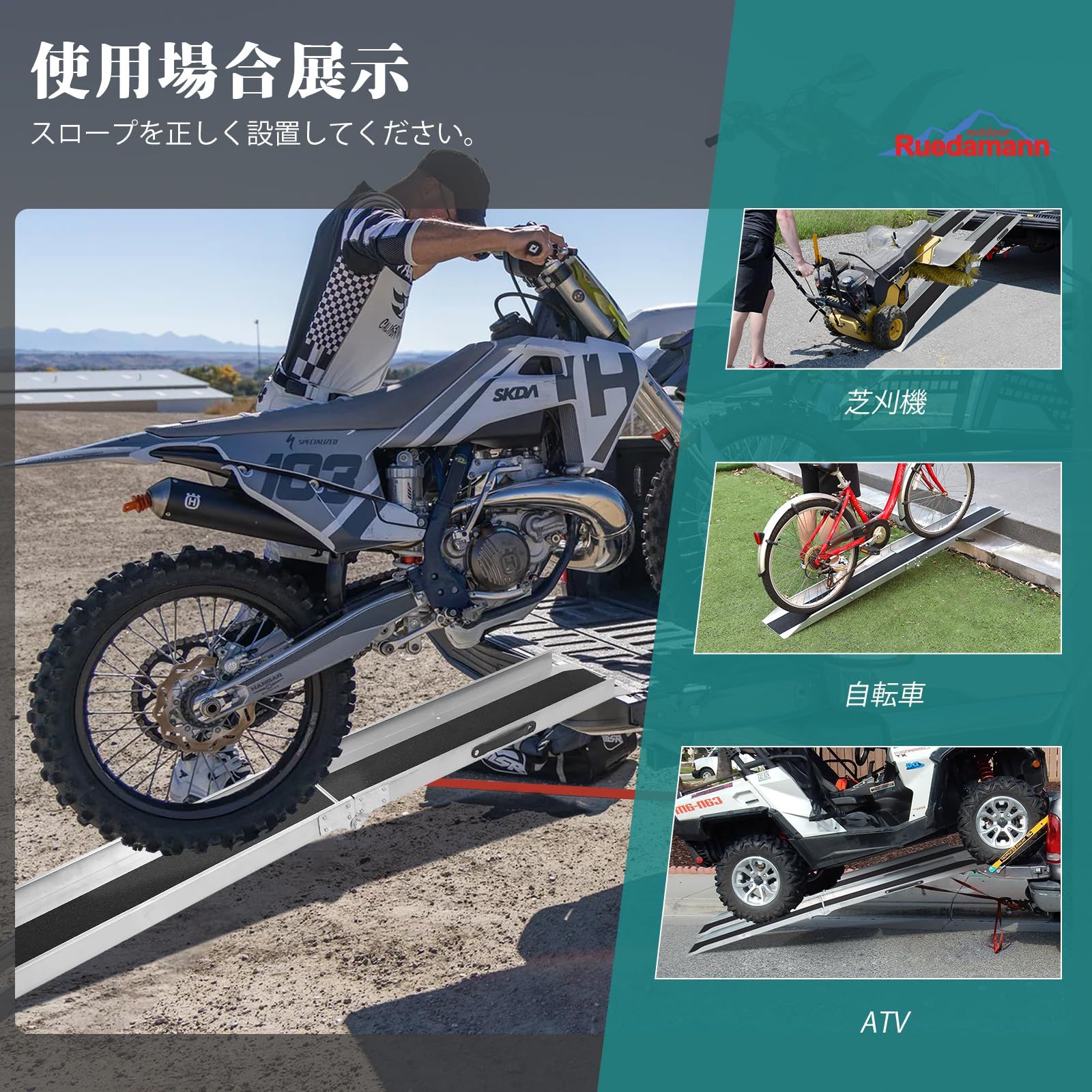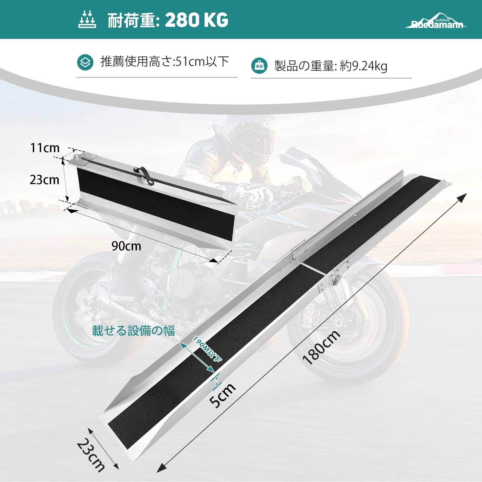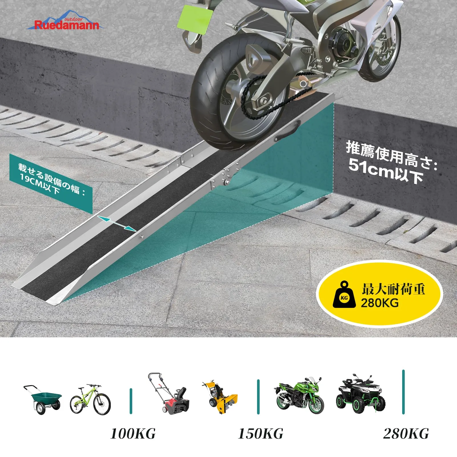 特価商品 Ruedamann バイク ラダー 長さ180*23cm 耐荷重280kg 折り畳み式バイク スロープ スチール製 取っ手付き 自転車ラダー バイク ATV四輪バギー用 1本