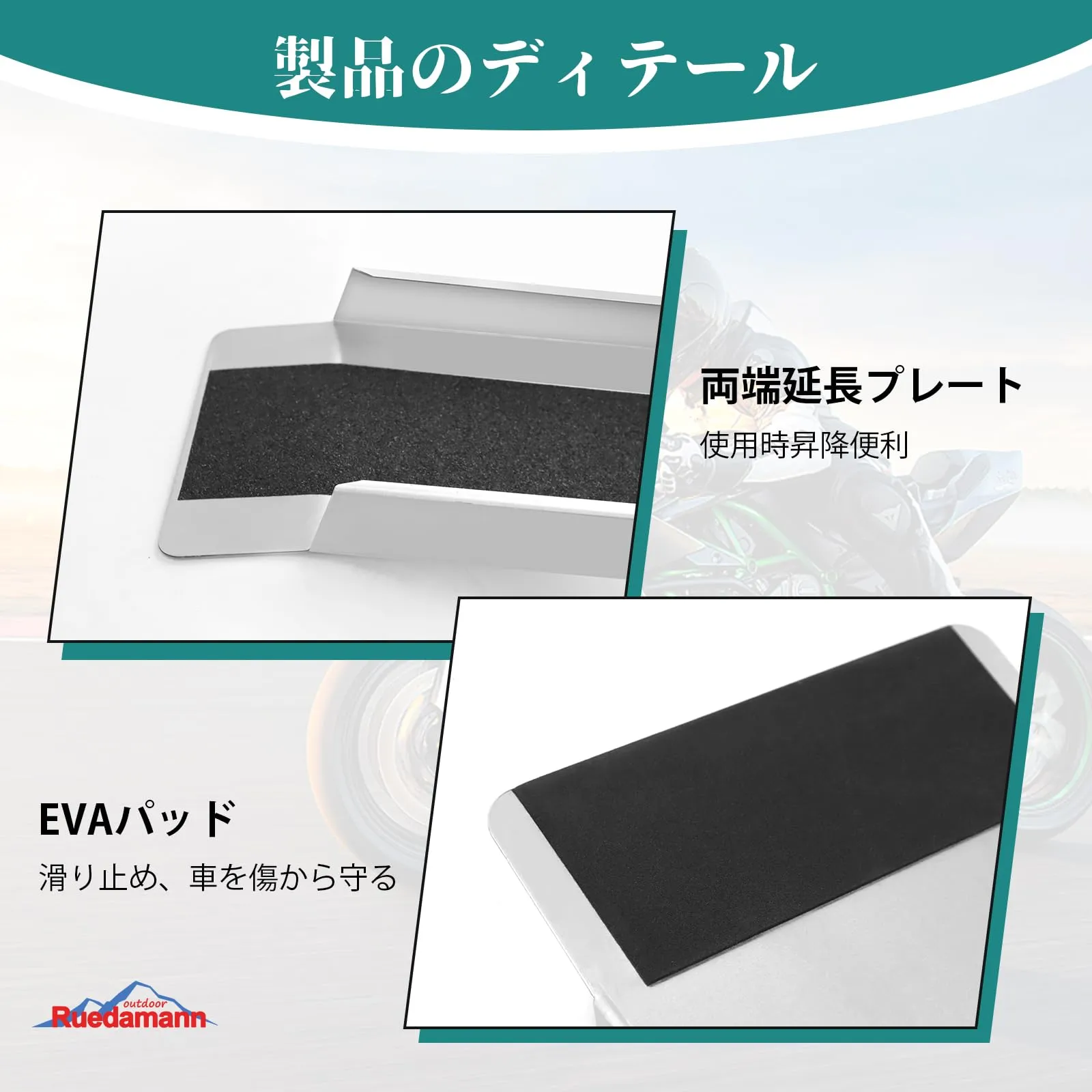 【サイズ】バイクラダーの展開サイズ:長さ180*幅23*高さ5cm、内幅:21cm。折りたたみサイズ:長さ90*幅23*高さ11cm。推薦使用高さ:51cm以下。