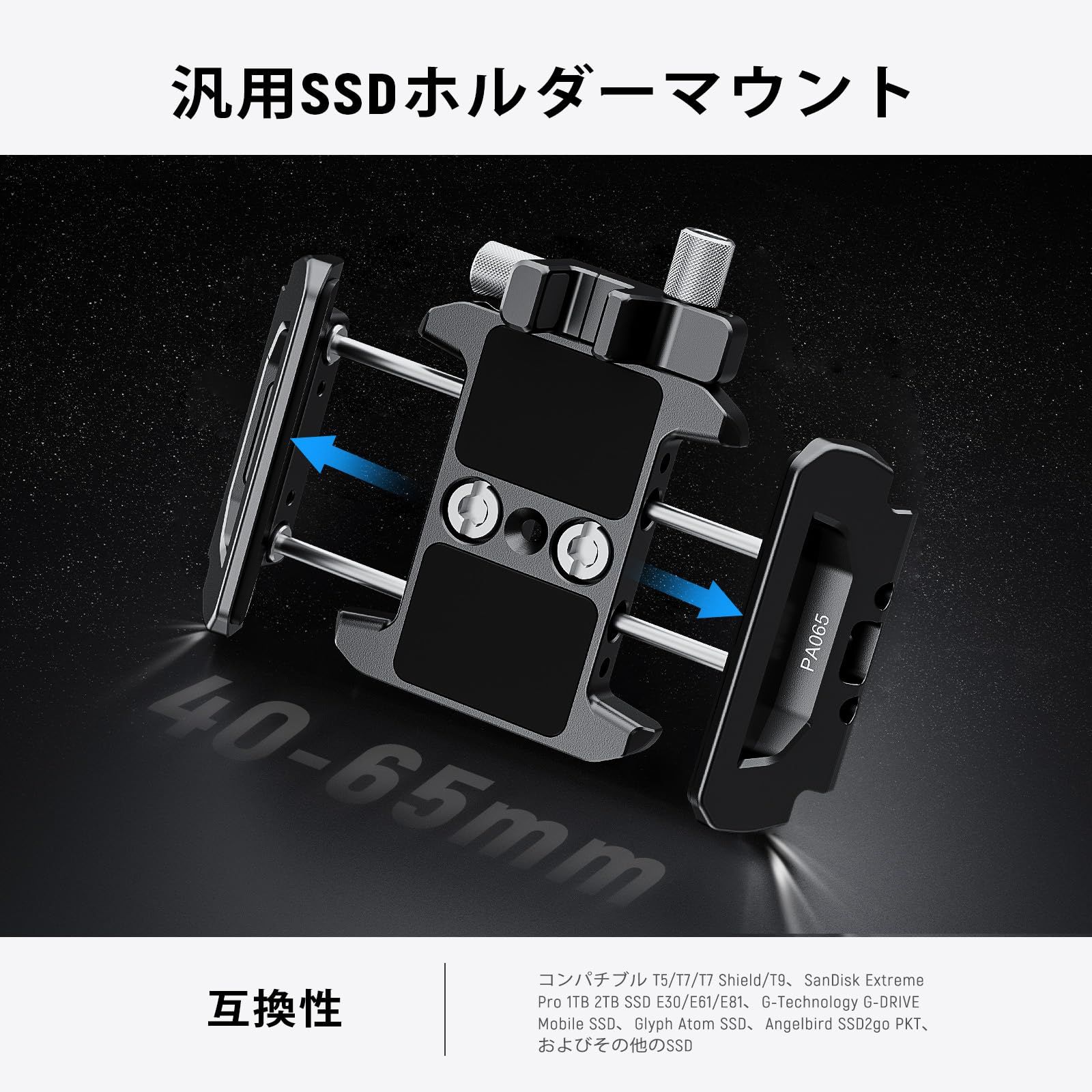 【汎用SSDホルダーマウント】1.6-2.6/40-65mm調整可能なSSD ホルダーブラケット取り付けアクセサリは、コンパチブル T5/T7/T7 Shield/T9、コンパチブル SanDisk Extreme Pro 1TB 2TB SSD E30/E61/E81、コンパチブル G-Technology G-DRIVE Mobile SSD、コンパチブル Glyph Atom SSD、コンパチブル Angelbird SSD2go PKTなどSSD。