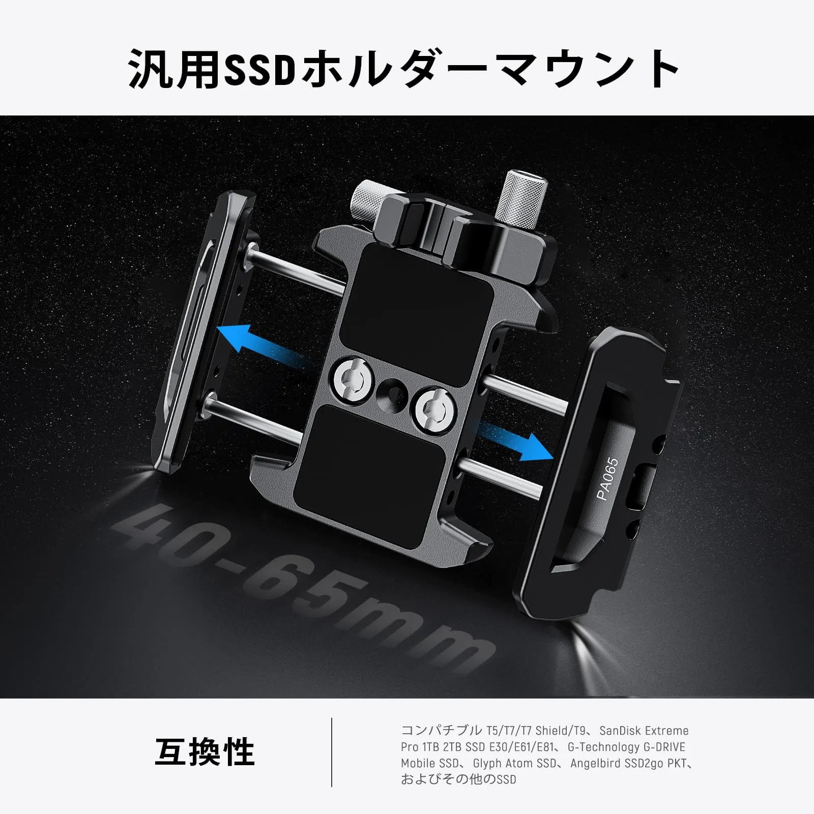 NEEWER SSDホルダー 40-65mm スマホケージ用 クイックリリース ケーブルクランプ付き SSDマウント SSDブラケット コンパチブル SmallRig iPhone 16 Pro Max 15 Pro Max S24 Ultra T9 T7 T5 SanDisk用 PA065