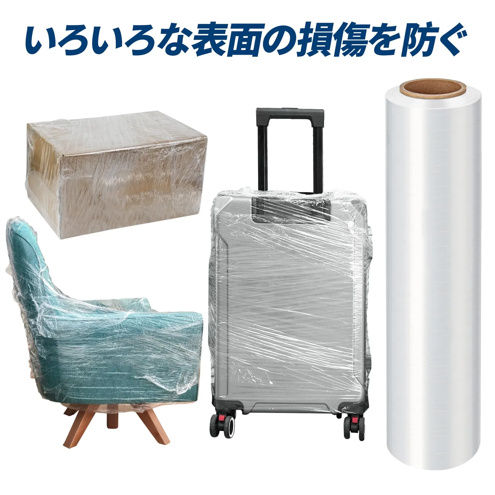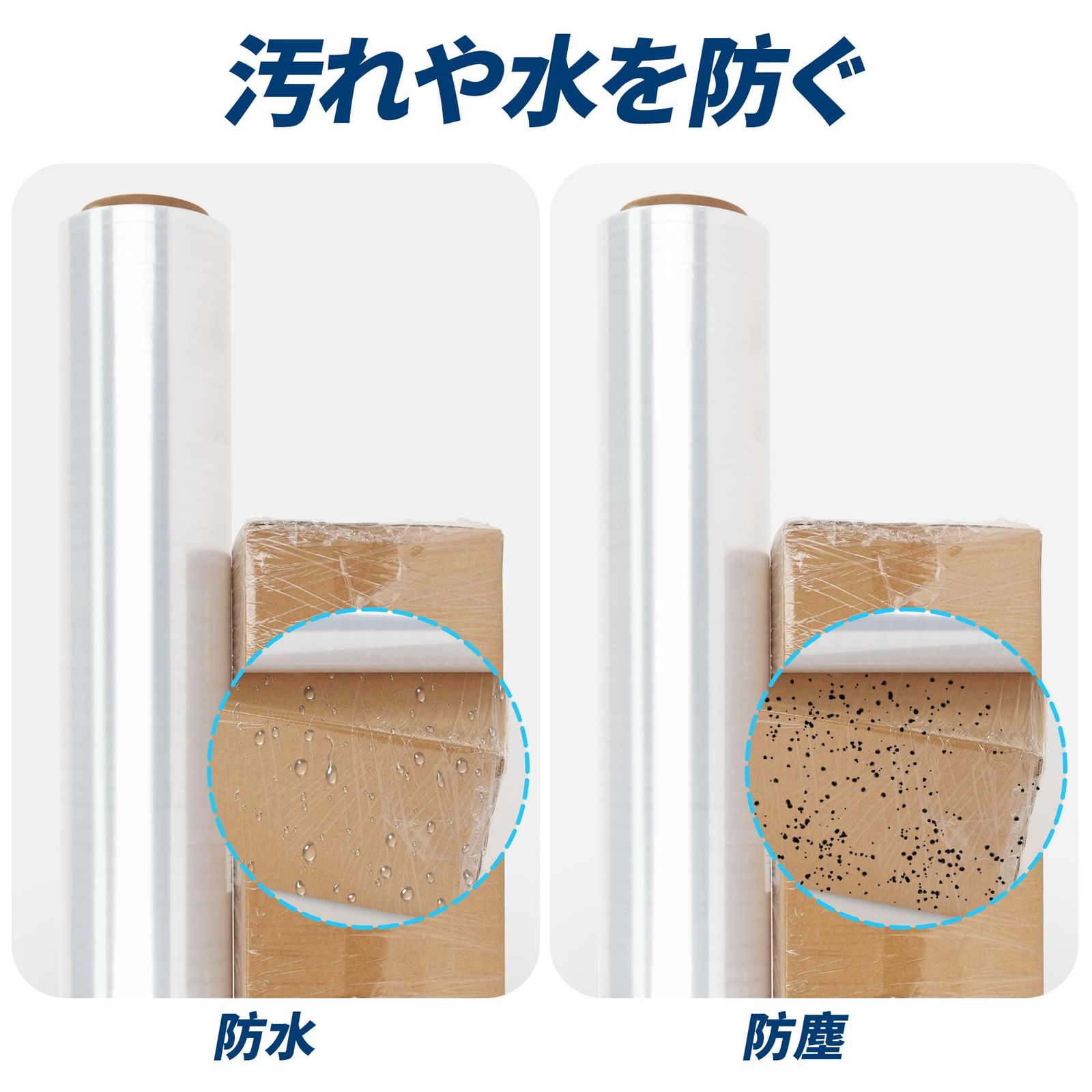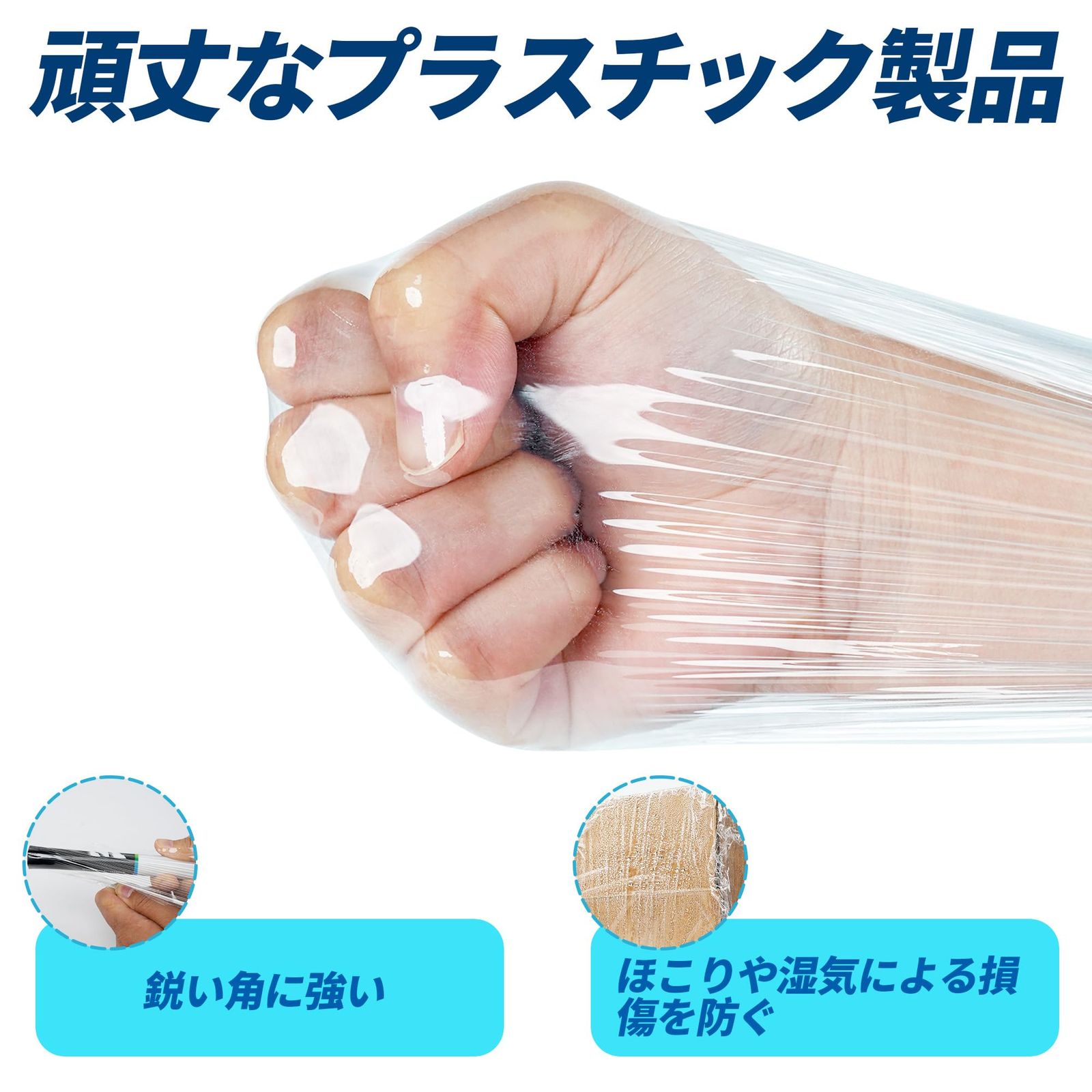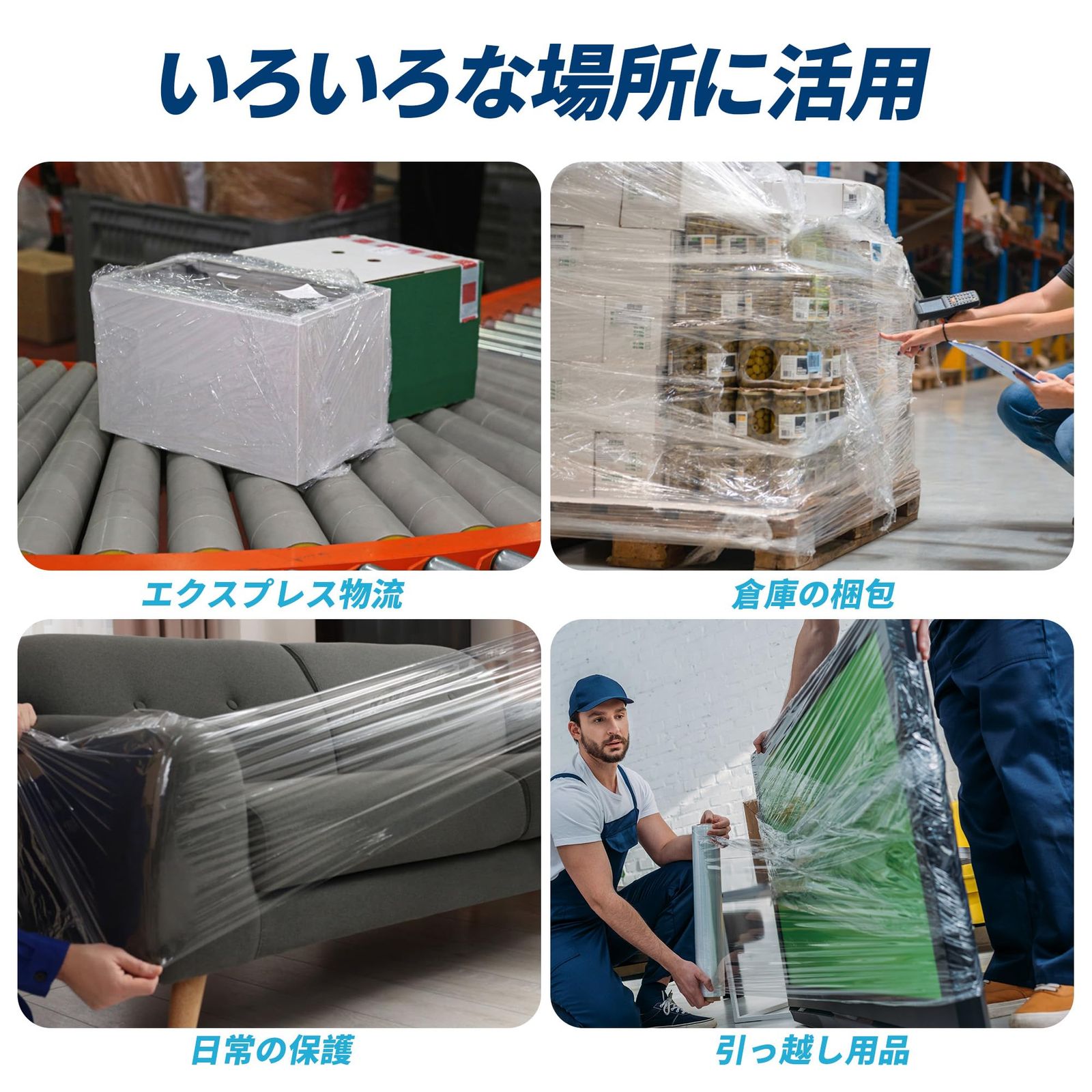 【特徴】段ボール箱にしっかり密着する高い粘着力・荷崩れを防ぎまとめて梱包できる高い伸縮性・高強度フィルム素材で、耐久性が抜群!