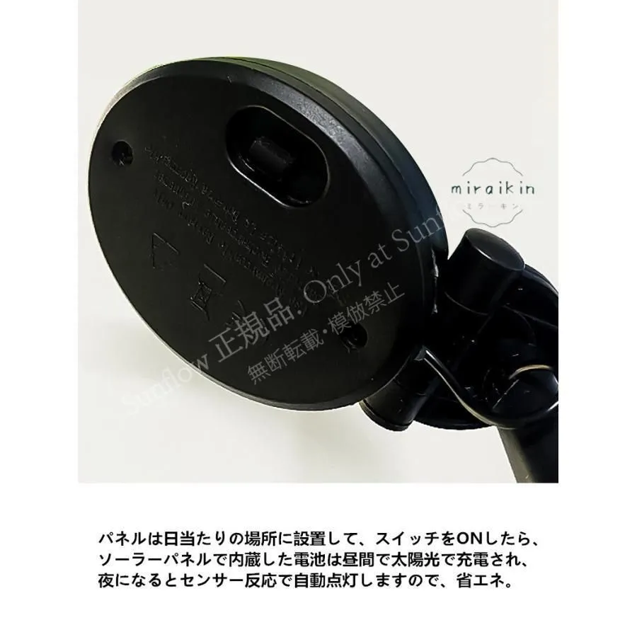 ?曇りや雨などの天候が悪い場合は、充電不足によりライトの点灯時間が短く発光も弱くなる場合があり。