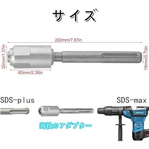 【使いやすい】このSDS Max-SDS Plusアダプターは、SDS Maxハンマードリルの用途を拡張し、SDS Plusドリルビットをハンマードリルに適用できるようになり、より幅広い作業をカバーします。