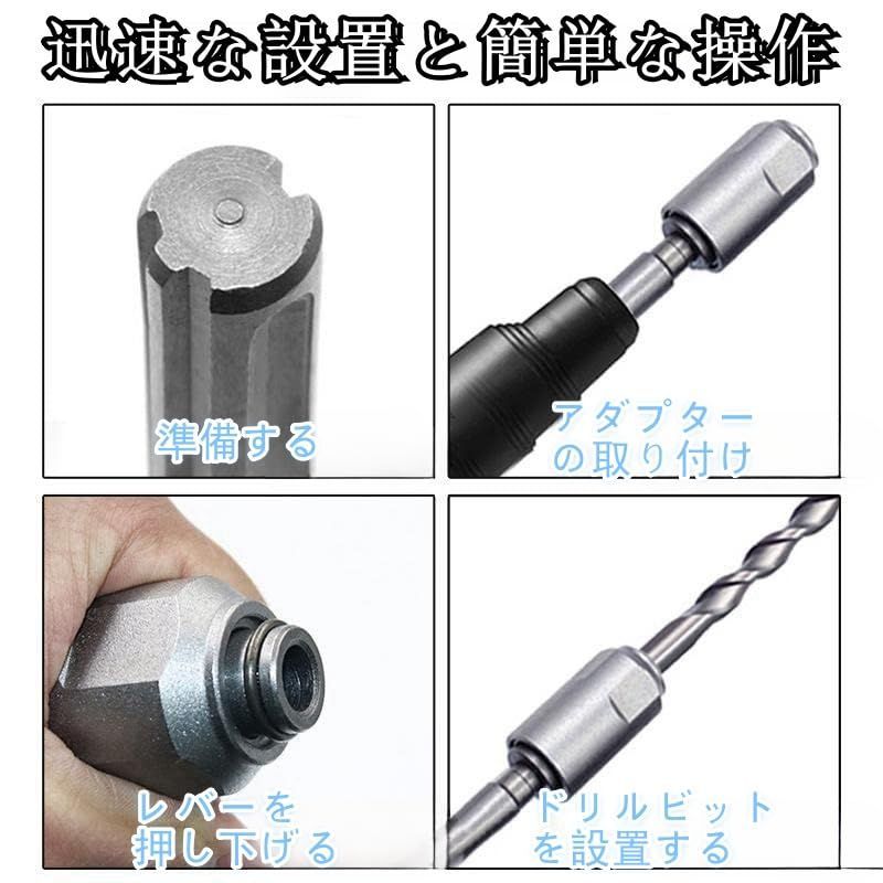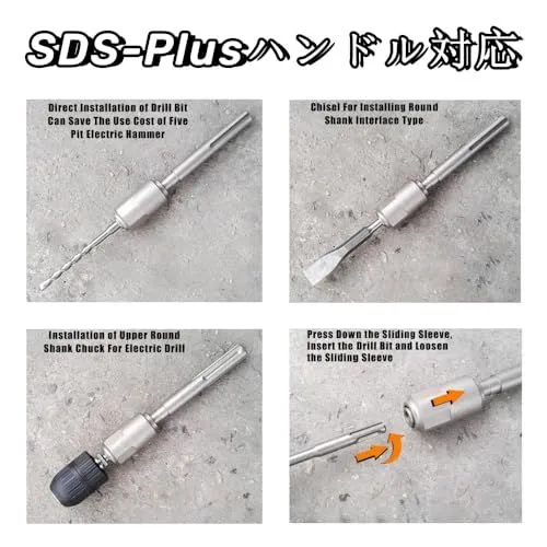 【取り付け簡単】SDS Max-SDS Plusアダプターは数秒でハンマードリルに簡単に取り付けることができます。 さまざまな仕様の SDS Plus ドリルビットを素早く安定してクランプし、正確で効率的な穴あけを容易にします。