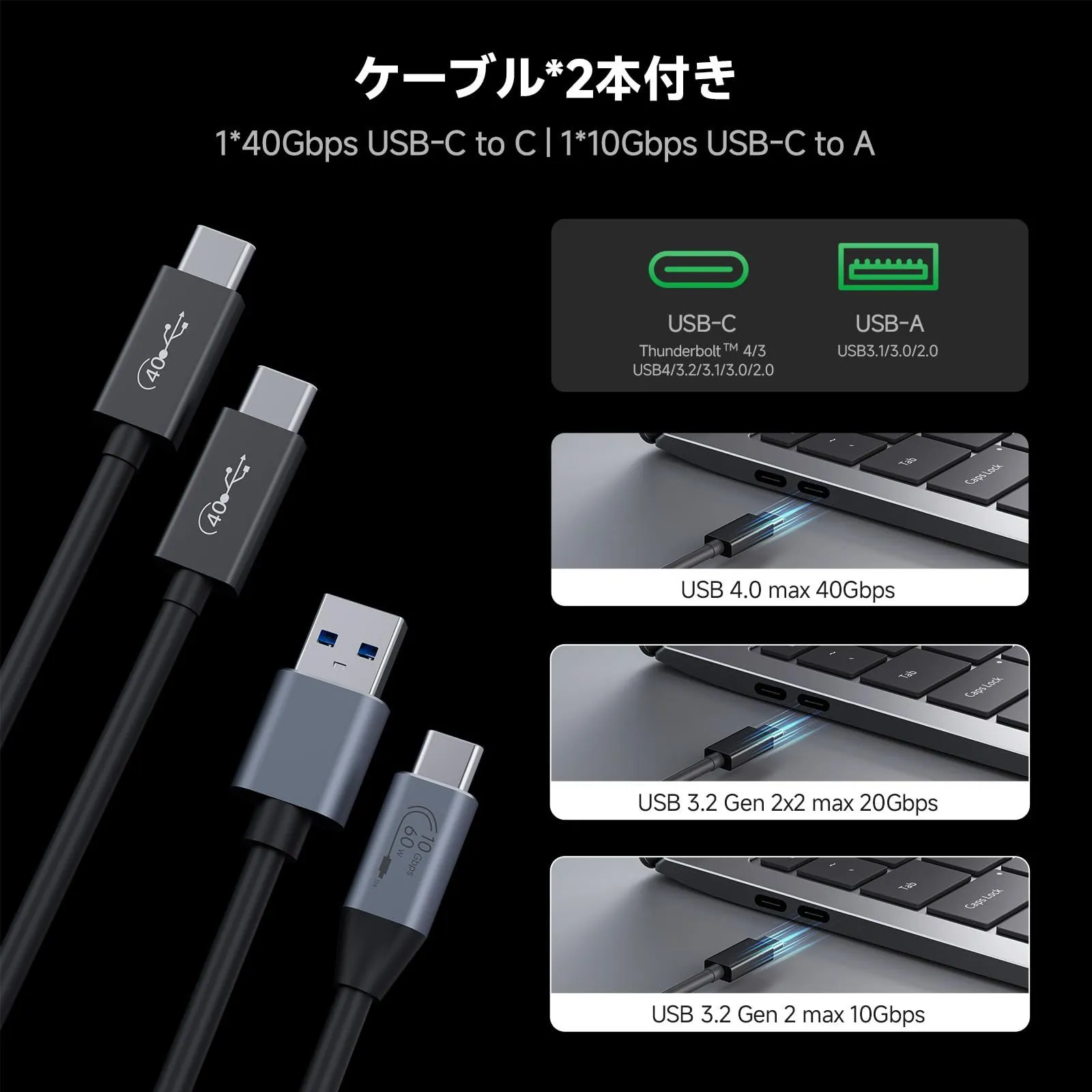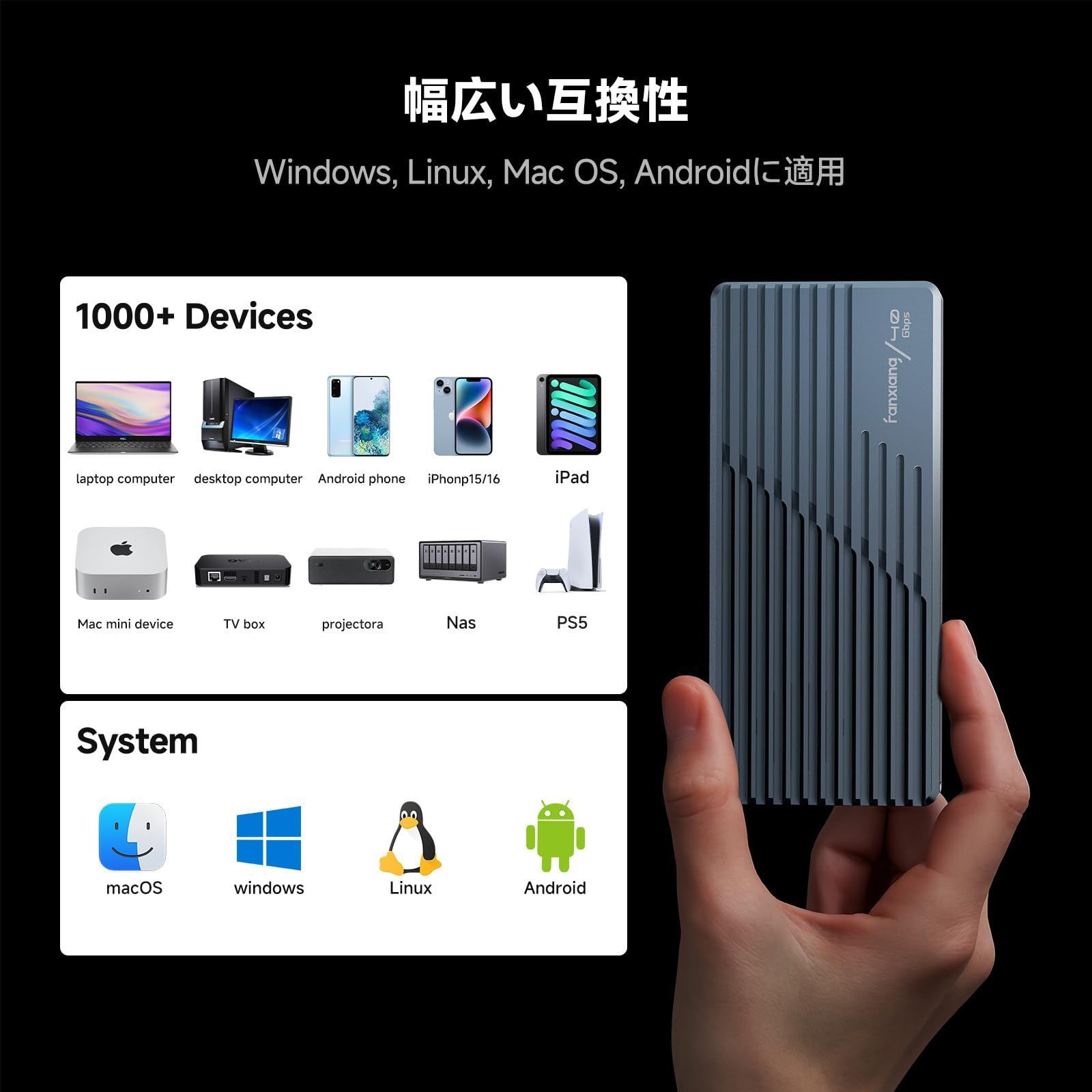 【40Gbps超高速転送】M.2 SSD 外付けケースは、USB4 出力インターフェースを使用すると、40Gbpsの伝送速度をサポートします。2.5Gのビデオファイルをわずか1秒で転送できる。作業効率の向上、より安定したパフォーマンス、より安全なデータ。