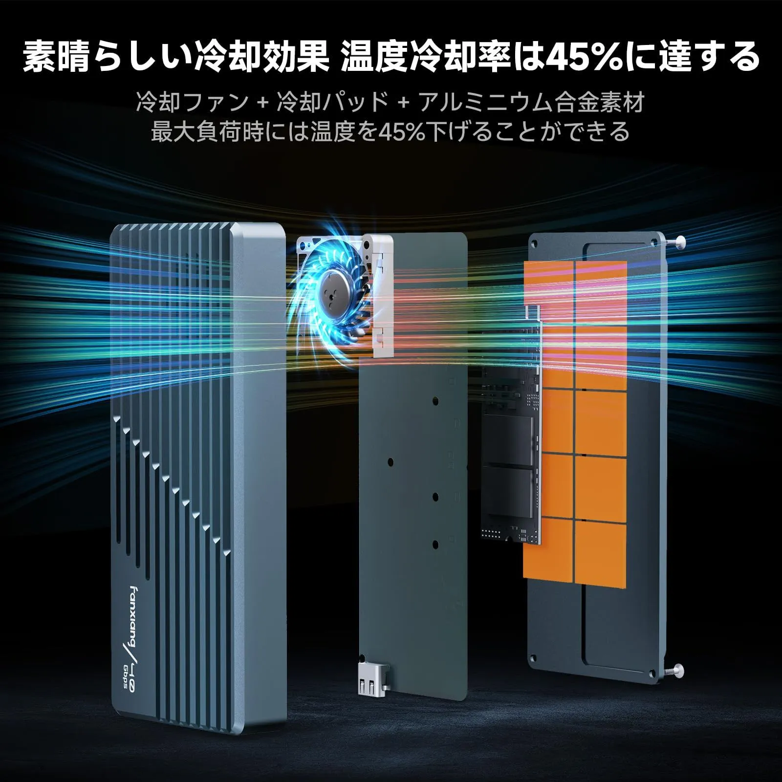 【新着商品】Fanxiang 40Gbps超高速 M.2 SSD 外付けケース NVMe SSD ケース 内蔵冷却ファン付き 高放熱 Thunderbolt 3/4 USB 4.0/3.2/3.1/3.0/2.0対応 2230 2242 2260 2280(M