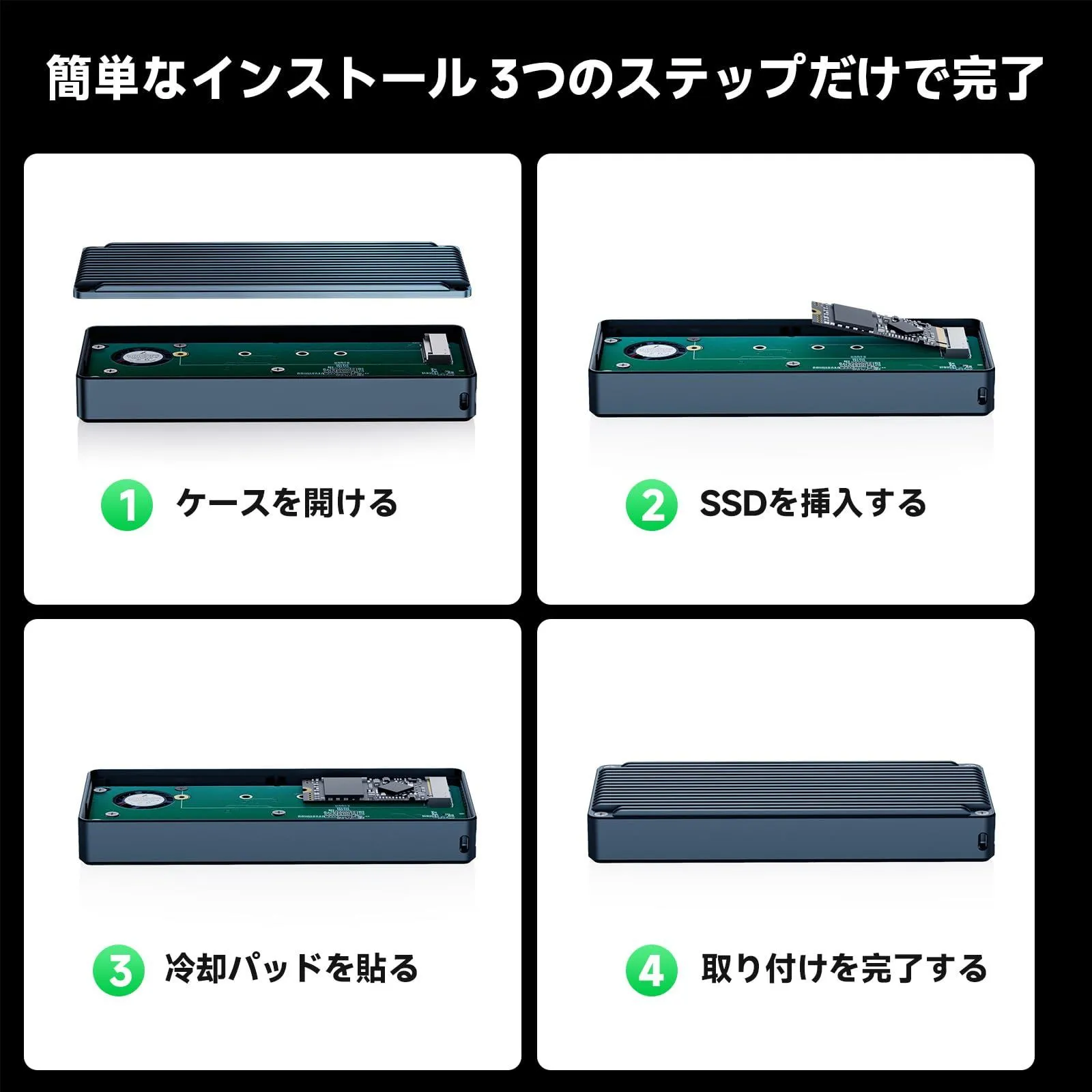 【2-in-1ケーブルにアップグレード】M.2 USBアダプタに付属するUSBケーブルは、USB C to A(10Gbps)とUSB C to C(40Gbps)の2つの出力ポートがあり、パソコン、携帯電話、ゲーム機などに自由に接続できます、またこのM.2 SSD外付けケースは僅か120mm*53mm*16mmのコンパクトサイズです。小型かつ軽量なので、バッグやリュックに入れて持ち運びやすい。