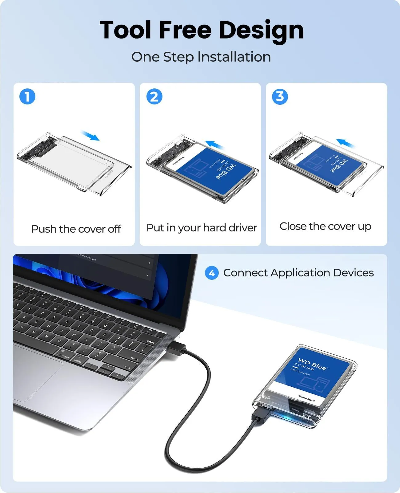 ORICO 2.5インチ HDD / SSD ケース USB3.0 ハードディスクケース UASP対応 5Gbps転送 6TB(9.5mm以下)まで対応 静電気防止 PC材料 透明な 外付け SATA3.0 ドライブ ケース 2139U3