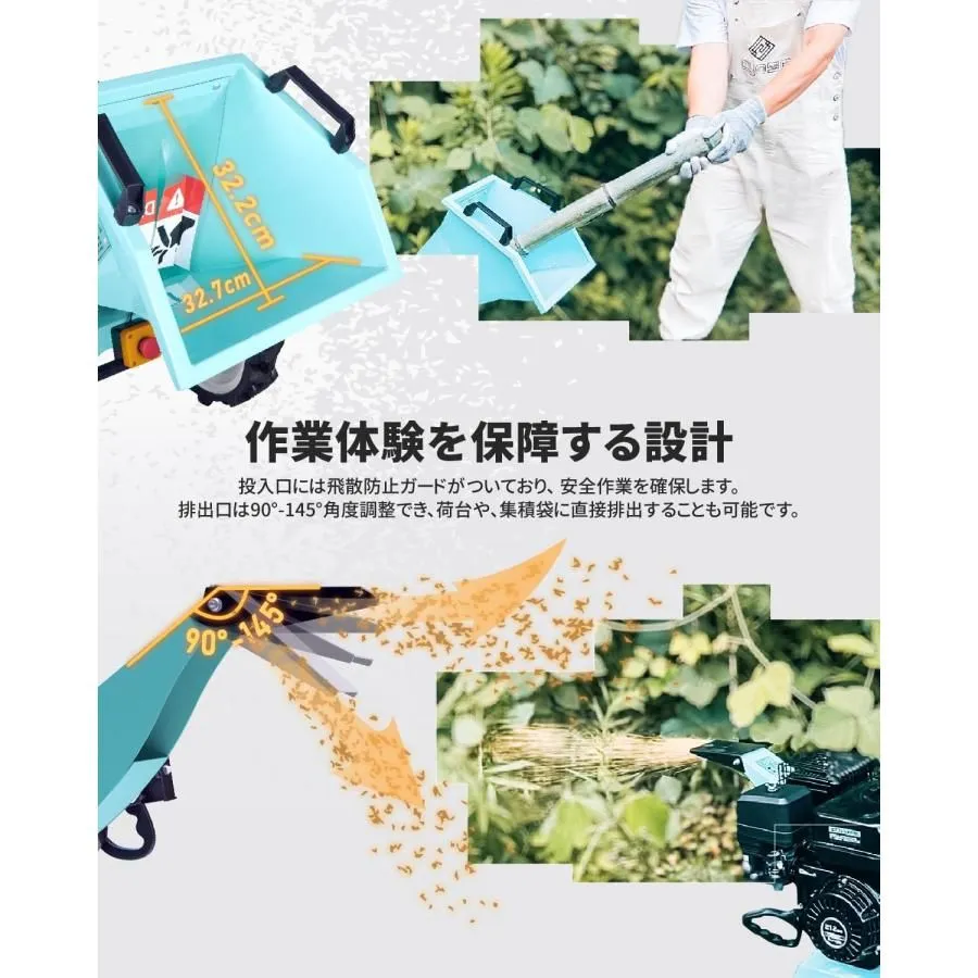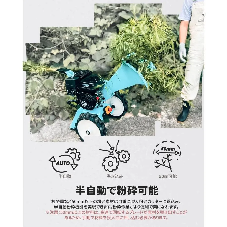 【家庭ゴミとして処理可能】粉砕能力は優秀で、投入した木材はあっという間に細かなチップ状になります。可燃ごみとして出すことは可能になり、野焼き禁止の難関を突破します!農業、造園業、果樹園業、各自治体もちろん、一般ご家庭や小学校など公共機関でも大活躍! gaidoh 粉砕 エンジン粉砕機 ガーデンシュレッダー カッター ウッドチッパー 半自動 ガソリン式 シュレッダーブレード 車輪付 小型 軽量 樹木 木材 枝 竹 草 藁 太め枝粉砕機 竹粉砕機 枝シュレッダー 家庭用 園芸用品 庭 業務用 農機具 アウトドア 雑草予防(※こちらは商品規格とは関係ございません)