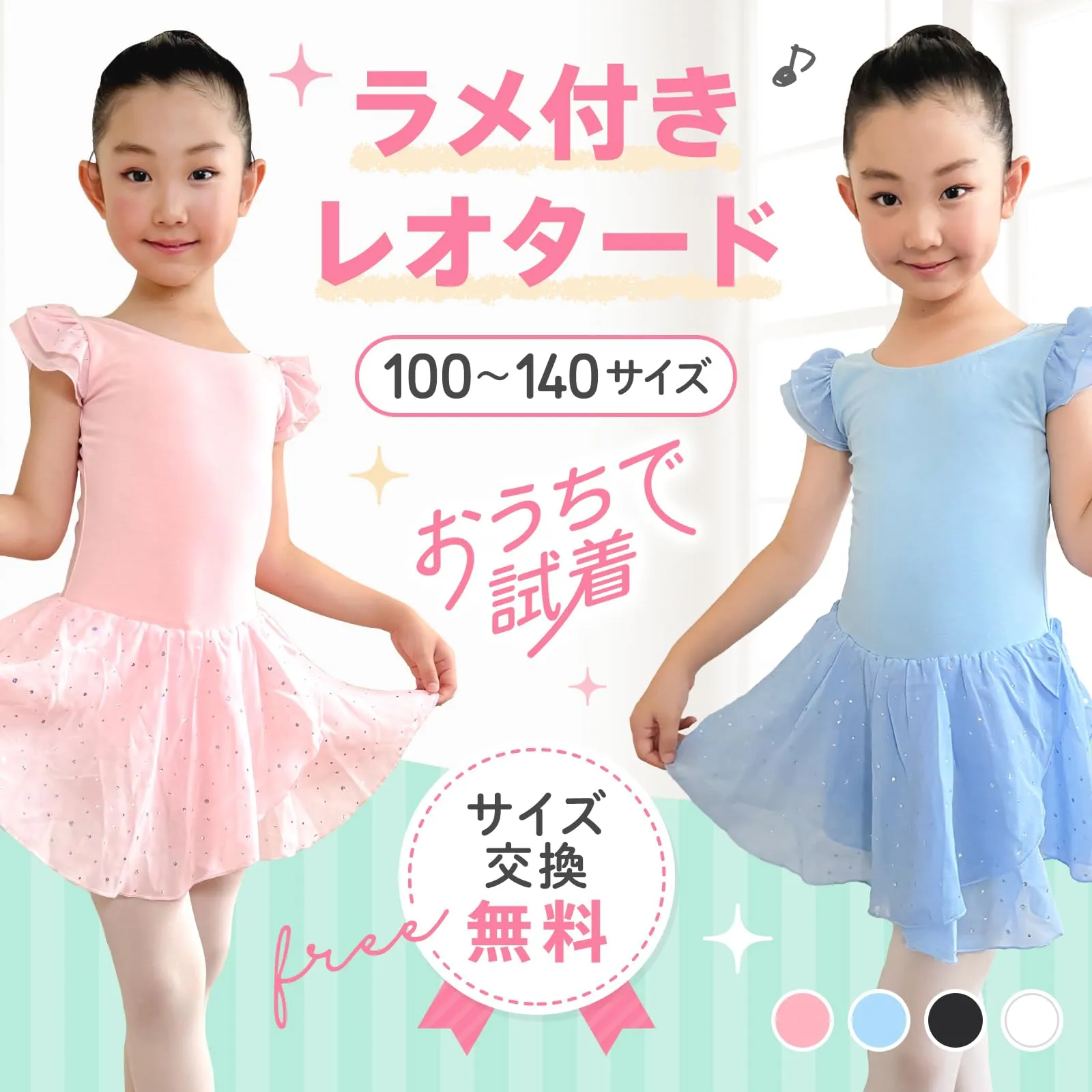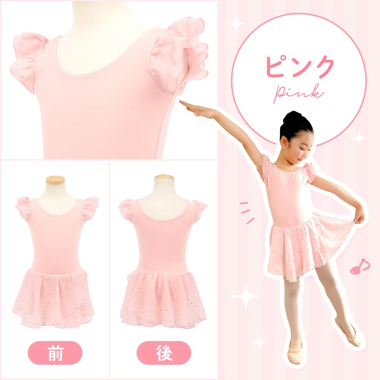 【お子様も喜ぶキラキララメスカート】シフォンスカートが可愛いお子様用のレオタードです。キラキララメ付きのスカートは柔らかく、着心地の良い素材です。