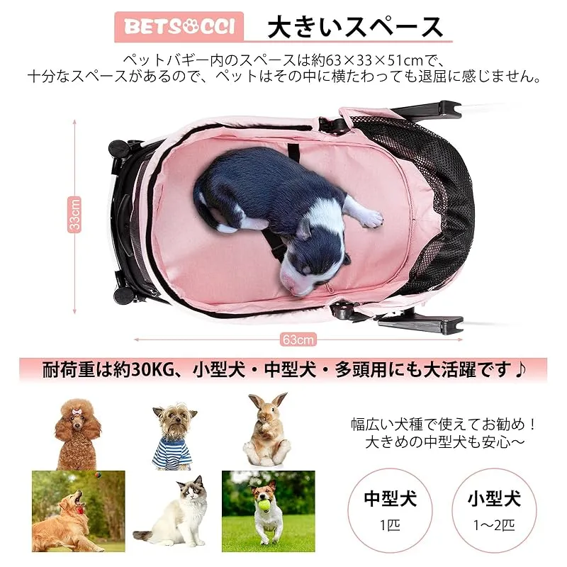 【商品詳細】 ブランド:BETSOCCI 商品種別:犬用カート 商品名:BETSOCCI ペットカート ワンタッチ 折りたたみ 猫犬兼用 ペットバギー 軽量 犬用ベビーカー コンパクト収納 4輪 衝撃吸収 サスペンション 前輪360°回転 後輪ブレーキ付き 小型犬 中型犬 お出かけ 散歩 通院 介護用 一体型 ドッグカート 組み立 製造元:BETSOCCI 色:ピンク