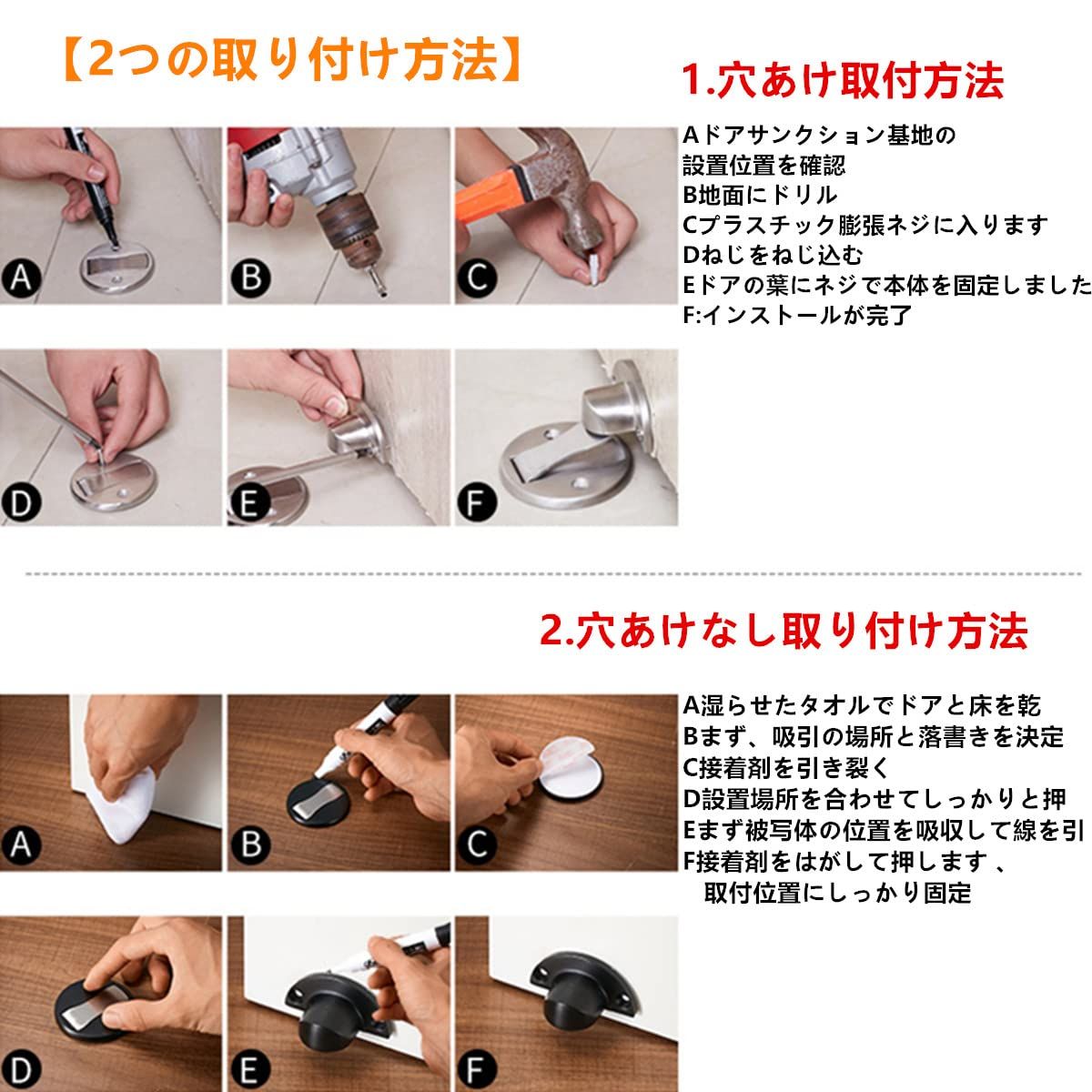 【材質】ステンレス製のドアストップは、亜鉛合金から精密鋳造されています。 強い耐摩耗性と耐食性を持ち、長期間錆びません。