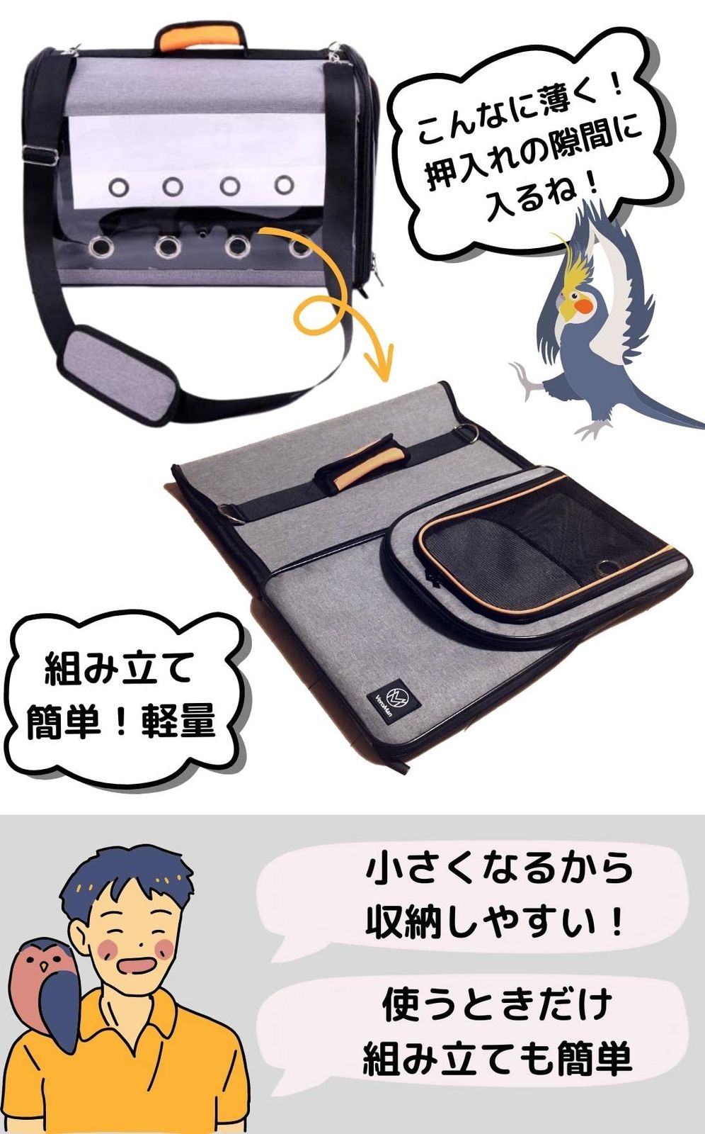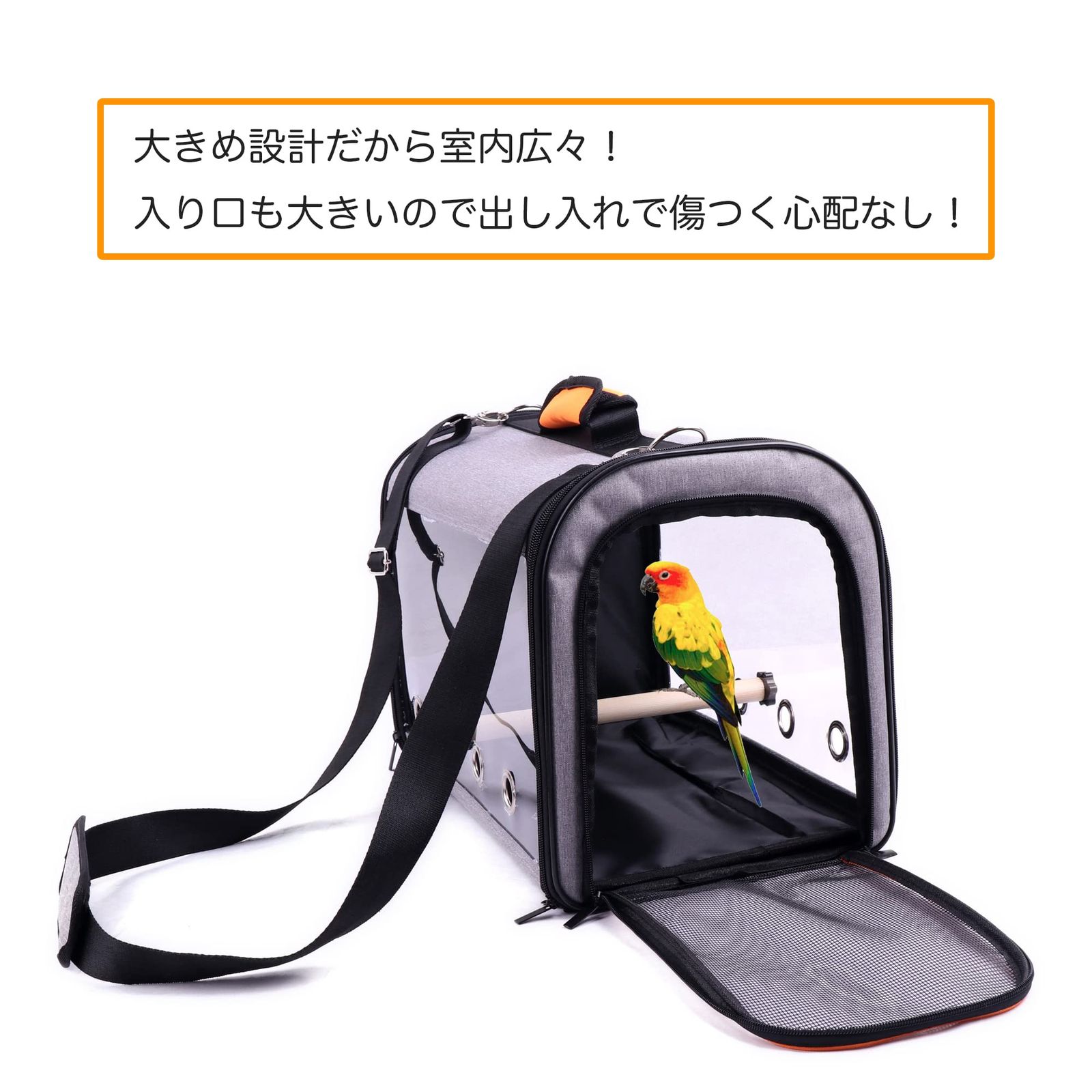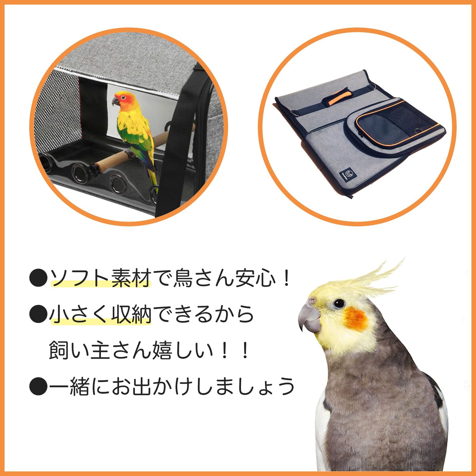 VEROMAN 鳥 インコ 移動用 バード キャリー バッグ 餌入れ付き 小さく収納 (グレー×オレンジ)