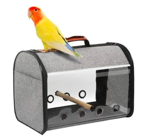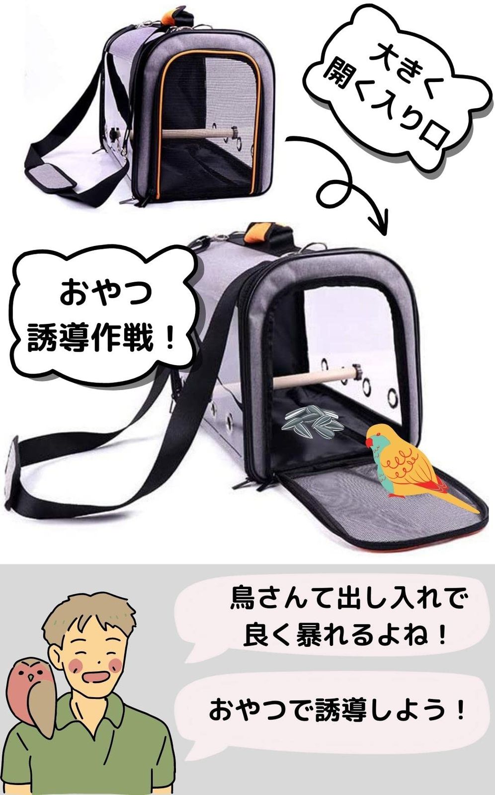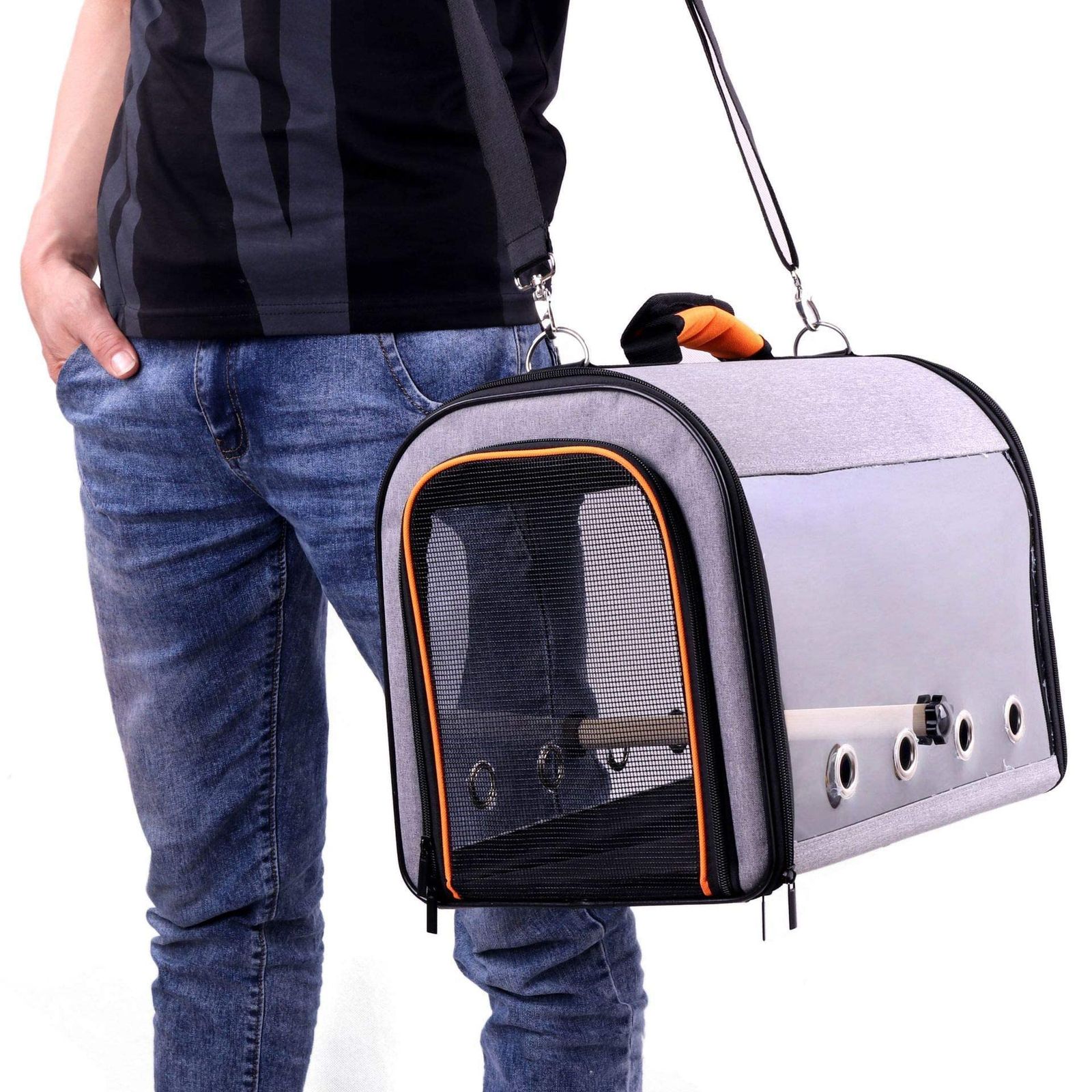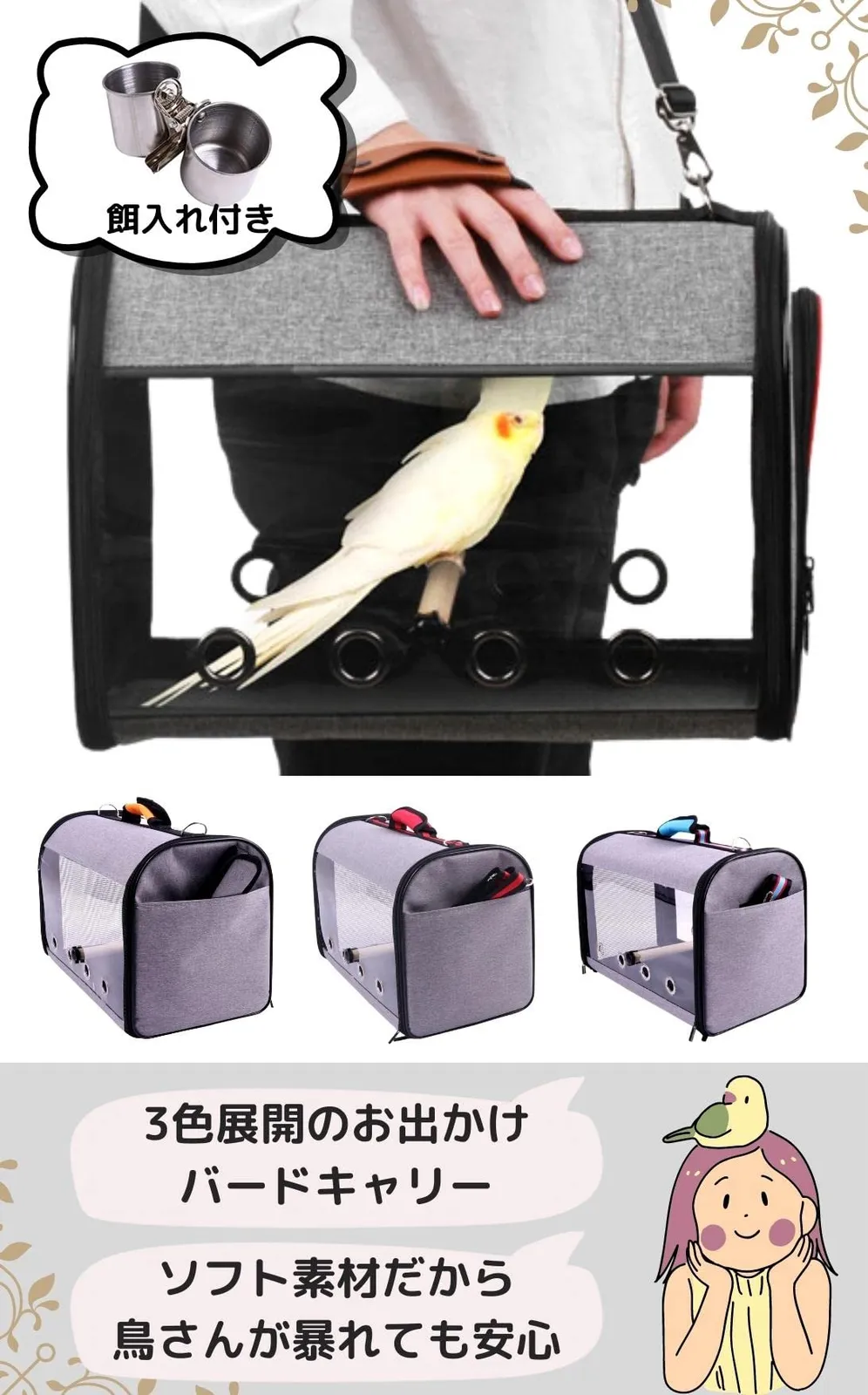 VEROMAN 鳥 インコ 移動用 バード キャリー バッグ 餌入れ付き 小さく収納 (グレー×オレンジ)