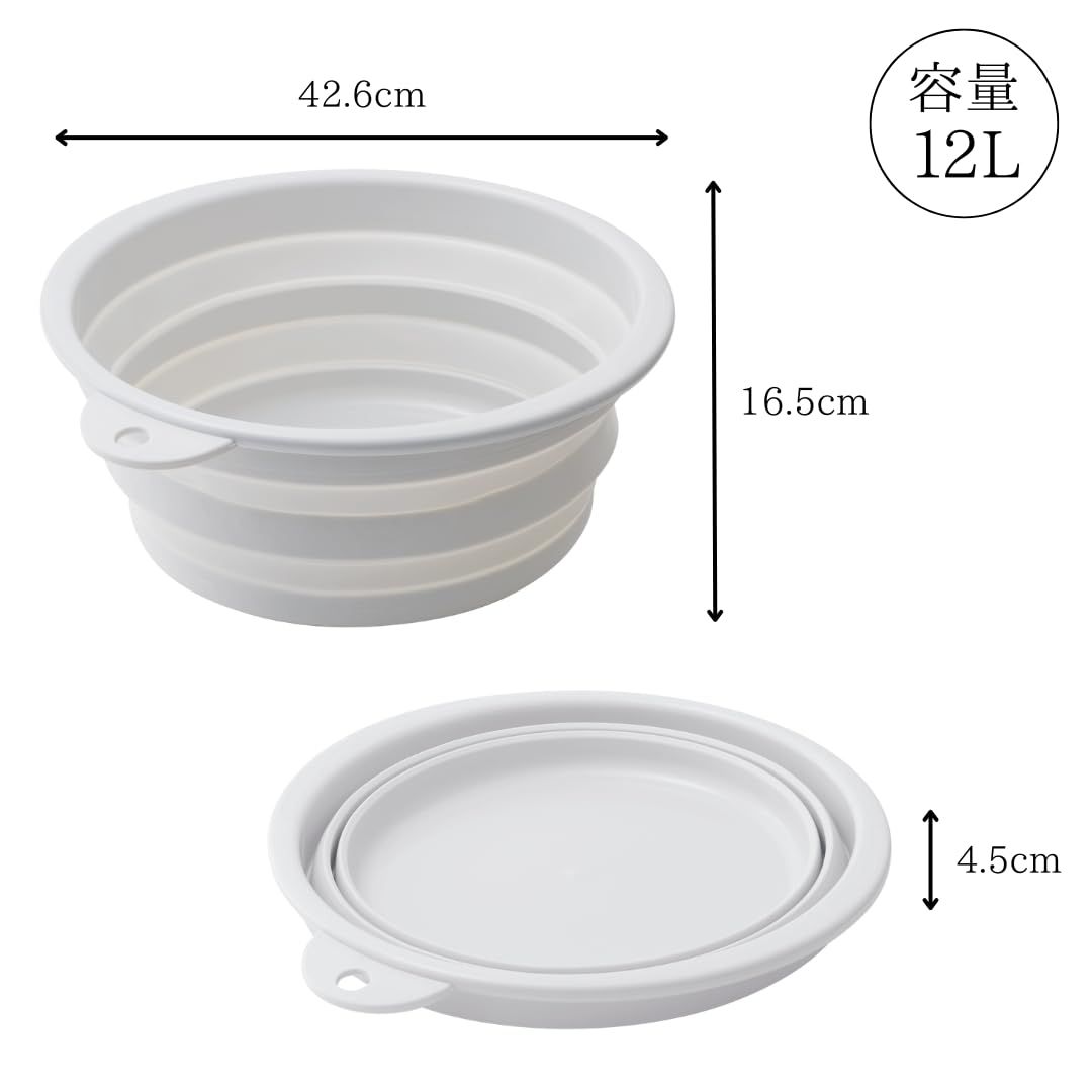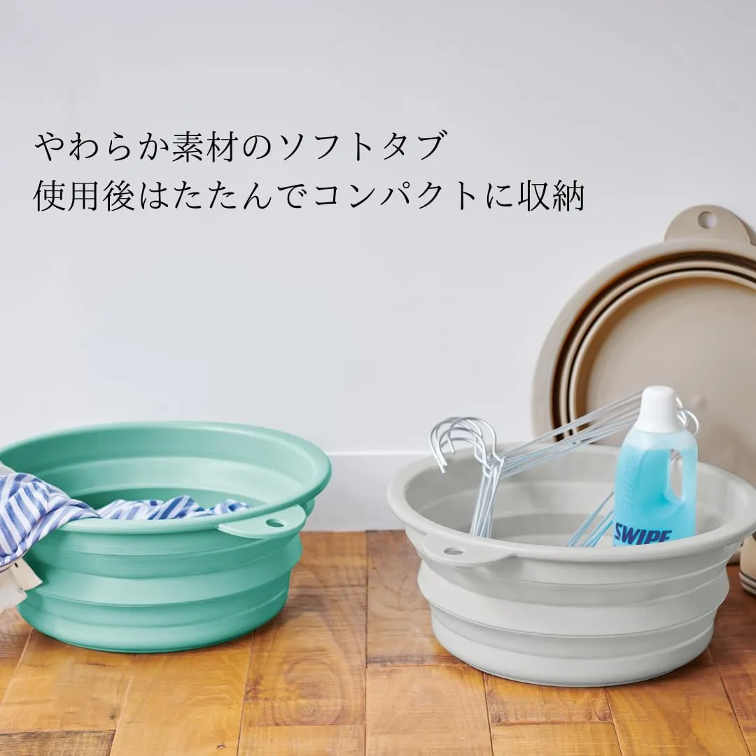 伊勢藤(ISETO) たらい ソフトタブ グレー 12L 幅40.5×奥行42.6×高さ4.5~16.5cm 日本製 折りたたみ 耐熱100℃ フック付 吊り下げ 足湯 つけ置き洗い 防災用品 コンパクト アウトドア キャンプ ペットバス 中型 I-615