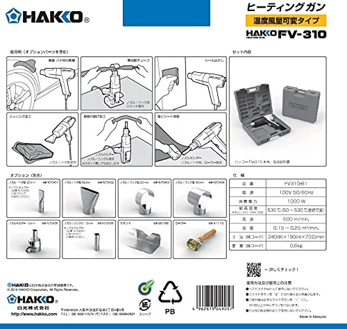 白光(HAKKO) ヒーティングガン 工業用ドライヤー 温度・風量可変タイプ(無段階コントロール) FV310-81