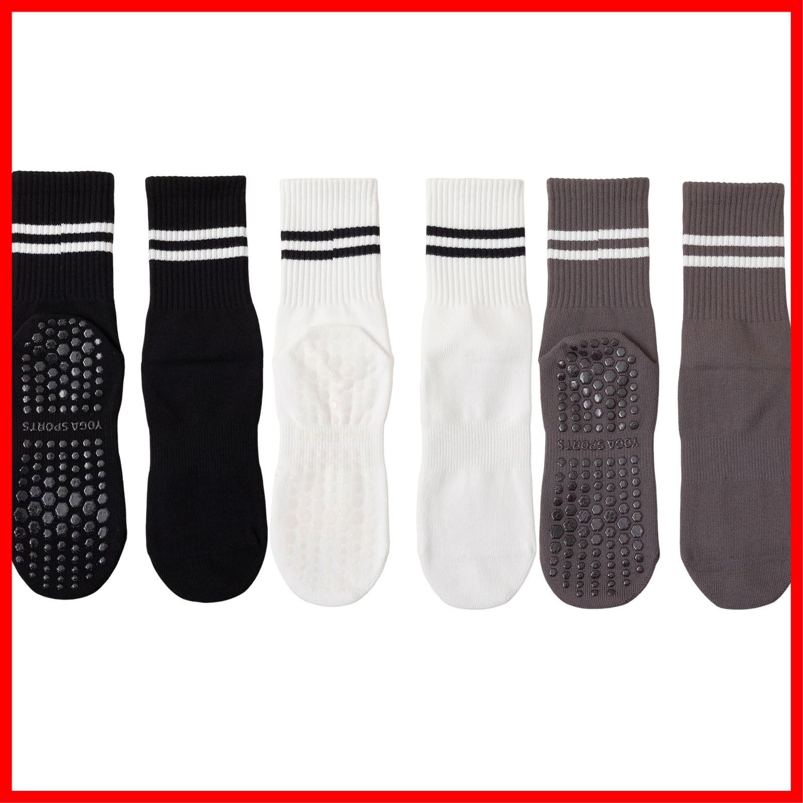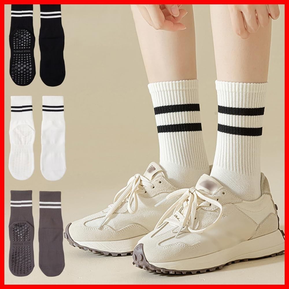 [] ヨガソックス 滑り止め ヨガ靴下 3足 ロング丈のソックス 綿 保温 ピラティス ソックス 抗菌消臭靴下 吸汗性 吸湿性 通気性 スポーツ フィットネス オールシーズン対応 男女兼用 3ダブル(ストッキング-黒+ダークグレー+白)