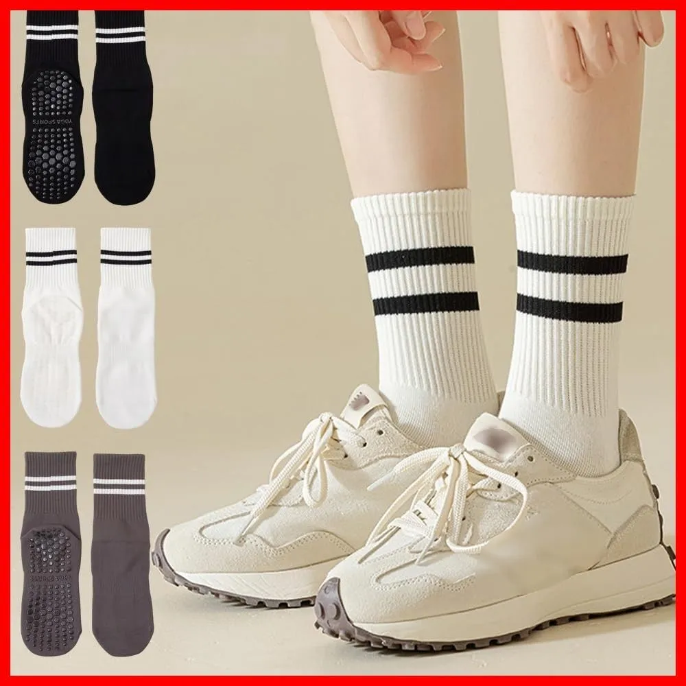 男女兼用 オールシーズン対応 フィットネス スポーツ 通気性 吸湿性 吸汗性 抗菌消臭靴下 ソックス ピラティス 3ダブル(ストッキング-黒+ダークグレー+白) 保温 綿 ロング丈のソックス 3足 ヨガ靴下 滑り止め ヨガソックス []