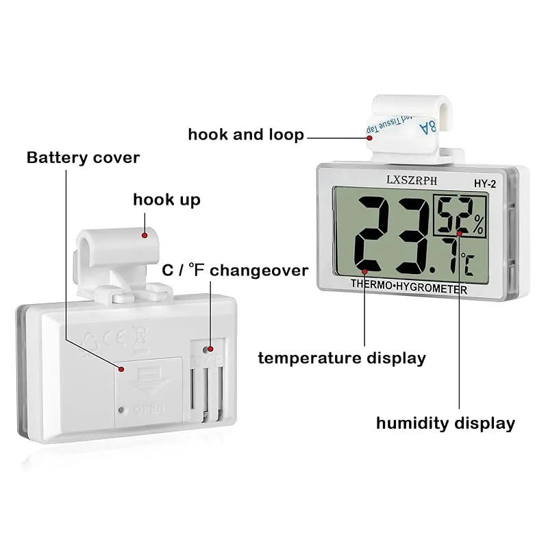 【温度/湿度/表示】HD液晶 画面に温度と湿度を表示してくれるデジタル爬虫類温度計湿度計。小さくても画面が大きめに設計されているため、とても見やすくてテラリウム、飼育室、爬虫類タンクの温度と湿度を一目で分かて監視しやすいです。