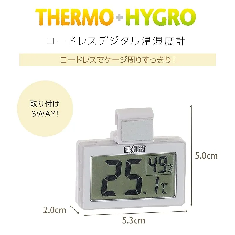 ☆彡エキゾテラ GEX EXOTERRA コードレスデジタル温湿度計 3WAY設置OK ワイヤーケージにも [爬虫類用 ] 1