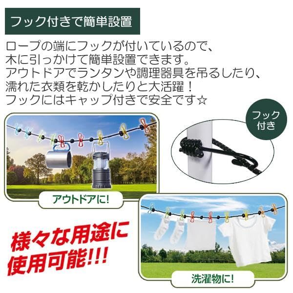 アウトドアや旅行先、普段使いの室内干しに! 引っ掛けフックでどこでも簡単に設置♪ ストッパー付きで間隔の調節もOK!