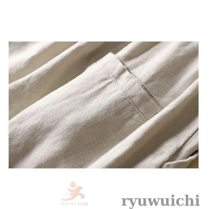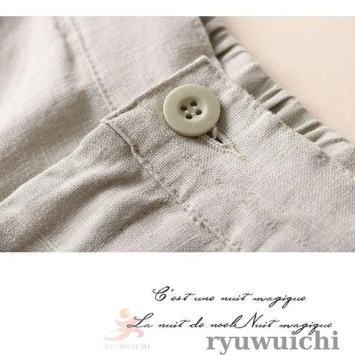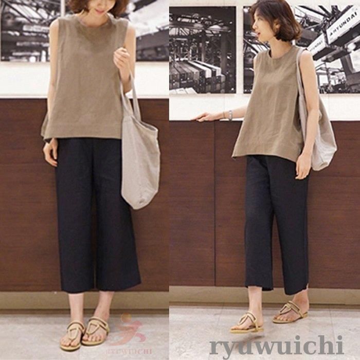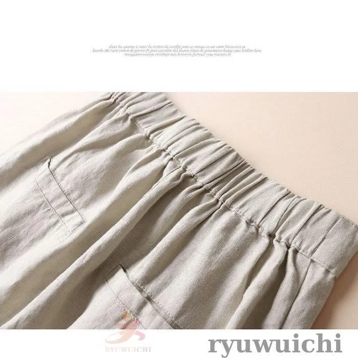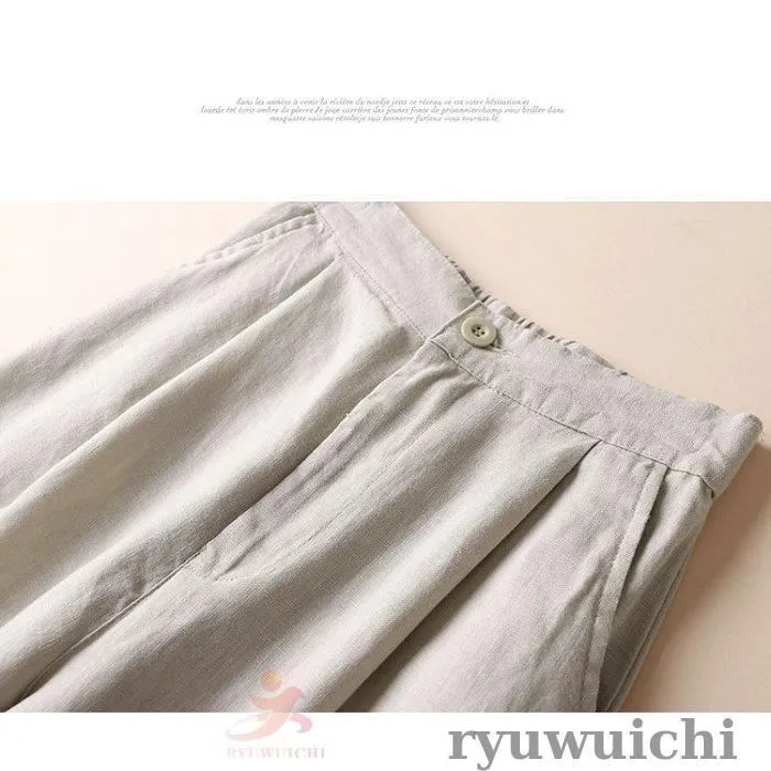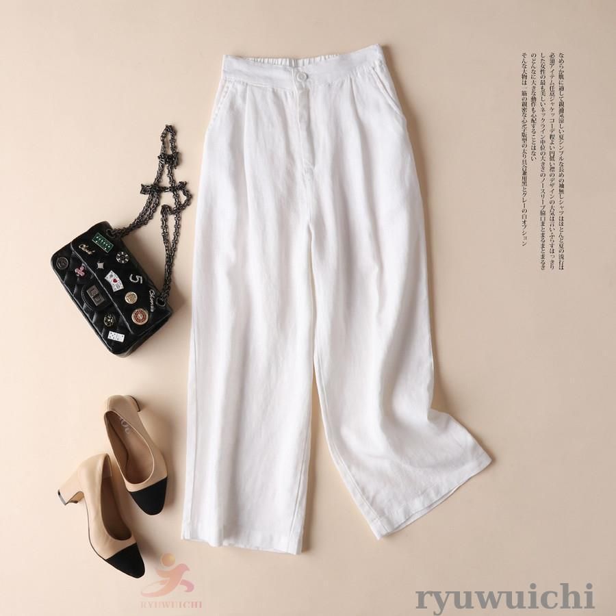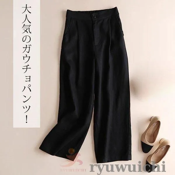 ワイドパンツ レディース ウエストゴム ゆったり ボトムス 薄手 体型カバー 亜麻 麻混 八分丈 九分丈 ガウチョパンツ ズボン 春夏秋