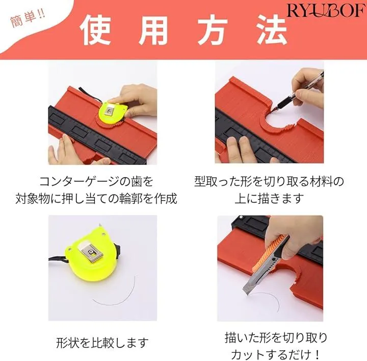 「DIY測定工具として活躍」床材やカーペット、車体パネル、ステンレス製ベースなど多様な場面で、不規則形状の輪郭を簡単・迅速に測定し、仕上がりの精度を高めます。
