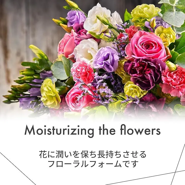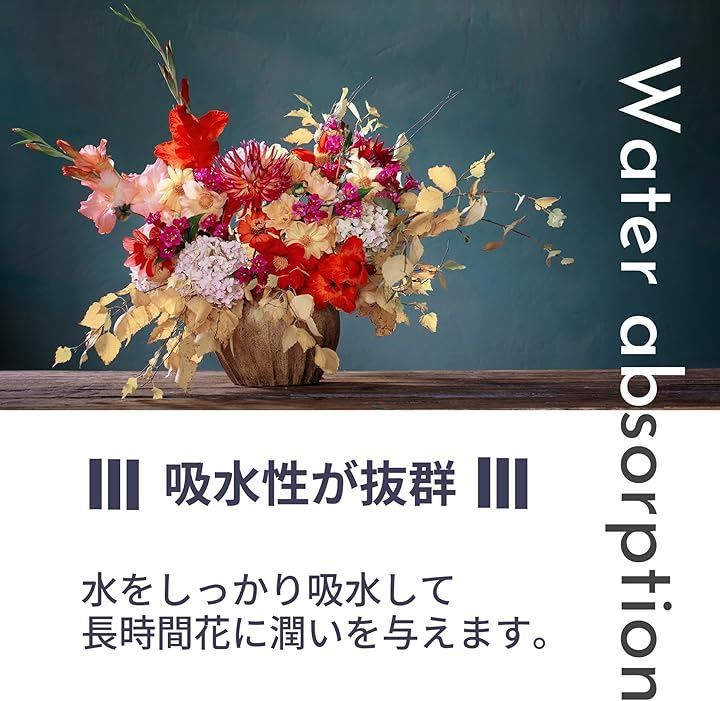 「優れた吸水性」このフローラルフォームは、吸水力を持ち、花を長時間新鮮に保ちます。