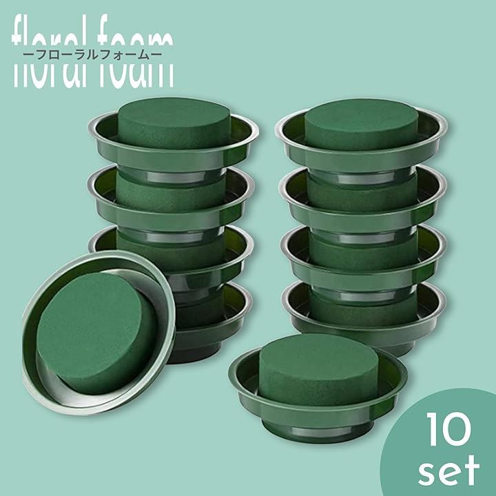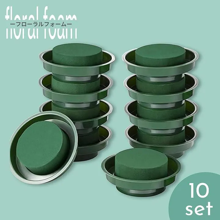 【こもれび屋】 こもれび屋フローラルフォーム フラワー資材 生花用 吸水スポンジ オアシス (グリーン, ラウンド 10個セット)