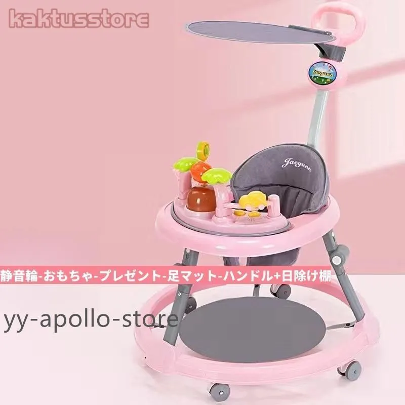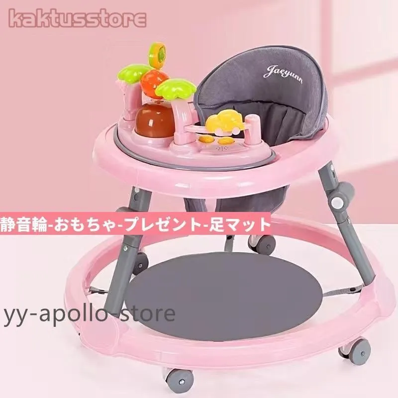 赤ちゃん ベビー 室内 室外 高さ調整 ベビーウォーカー スタンダード 丸型 歩く練習 折り畳み式 静音 テーブル付き 円形 車