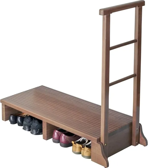 【新品・2営業日で発送】HAGIHARA 萩原 手すり付き玄関踏み台(片側手すり・ワイド) MFD-6909DBR 北海道、沖縄、離島配送不可
