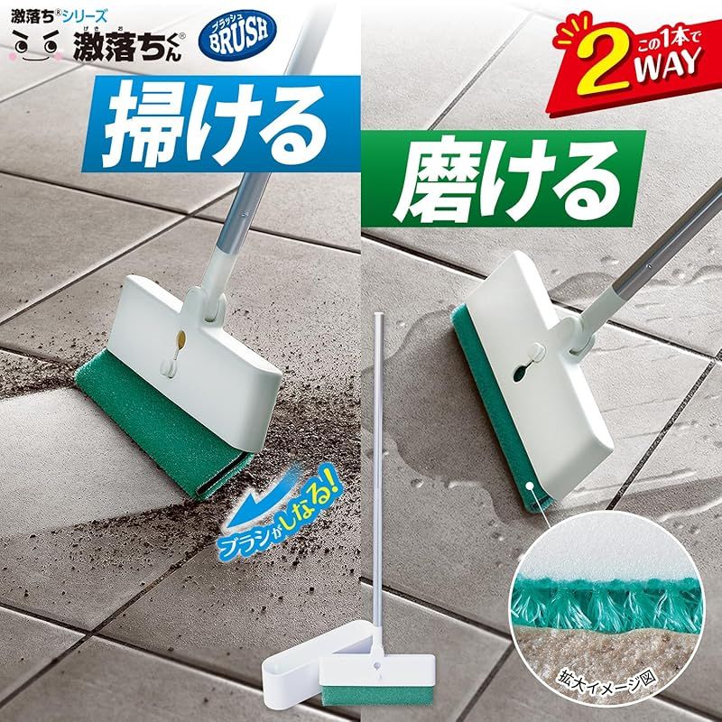 ★注目商品★レック 激落ちくん 玄関タイルブラシ 掃き & 磨き 2WAY (ケース付) ブラシの長さを変えて「掃き掃除」と「 目地・凹凸磨き掃除」ができる/高密度極細繊維ブラシ 0