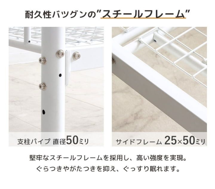2段 パイプベッド シングル キング ベッド 丈夫 耐荷重300kg パイプ スチール 宮なし 分割 シンプル ベット 白 黒 民泊 寮 ゲスト ID011