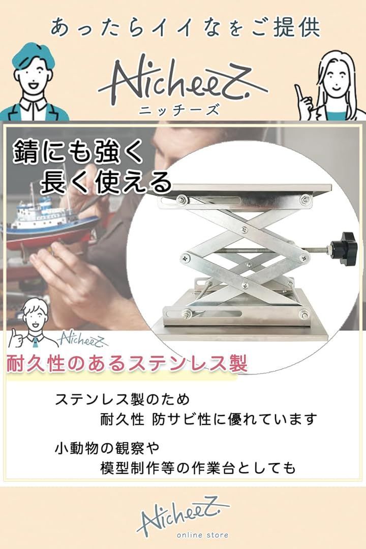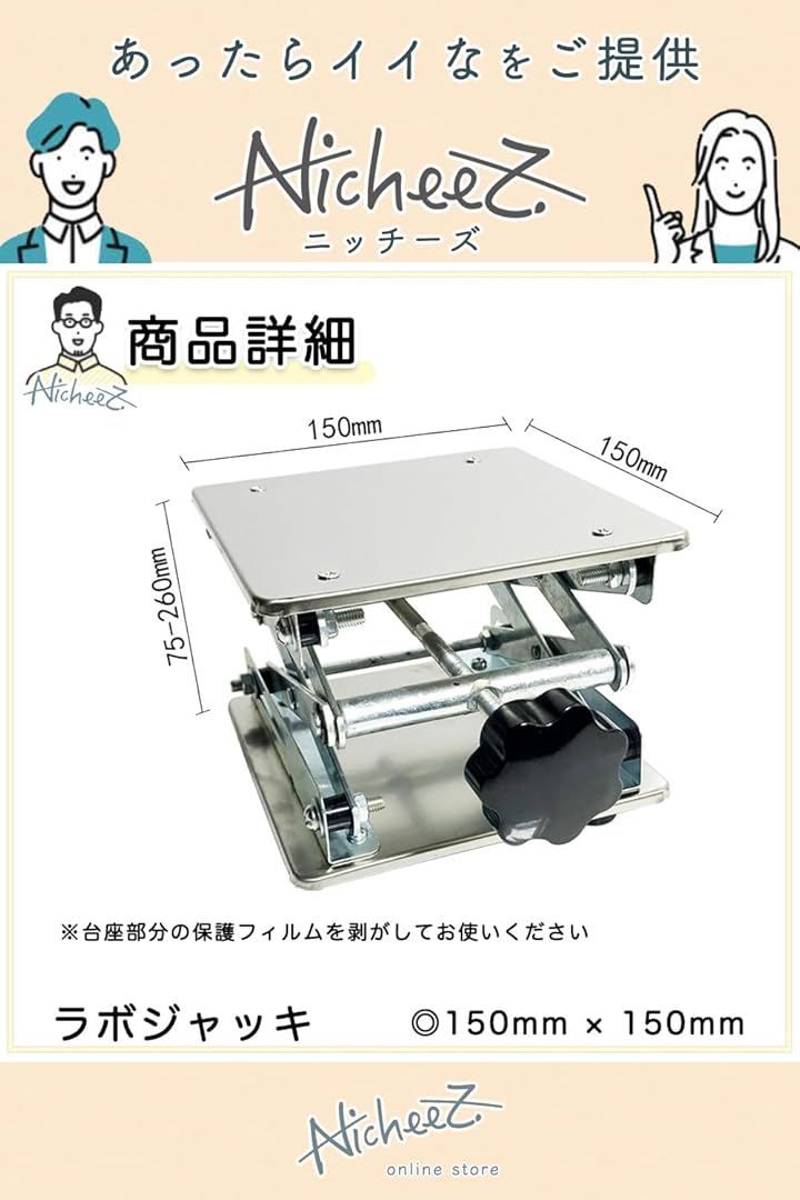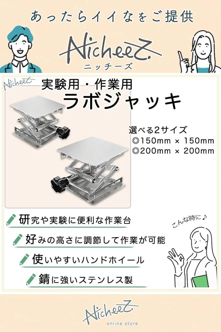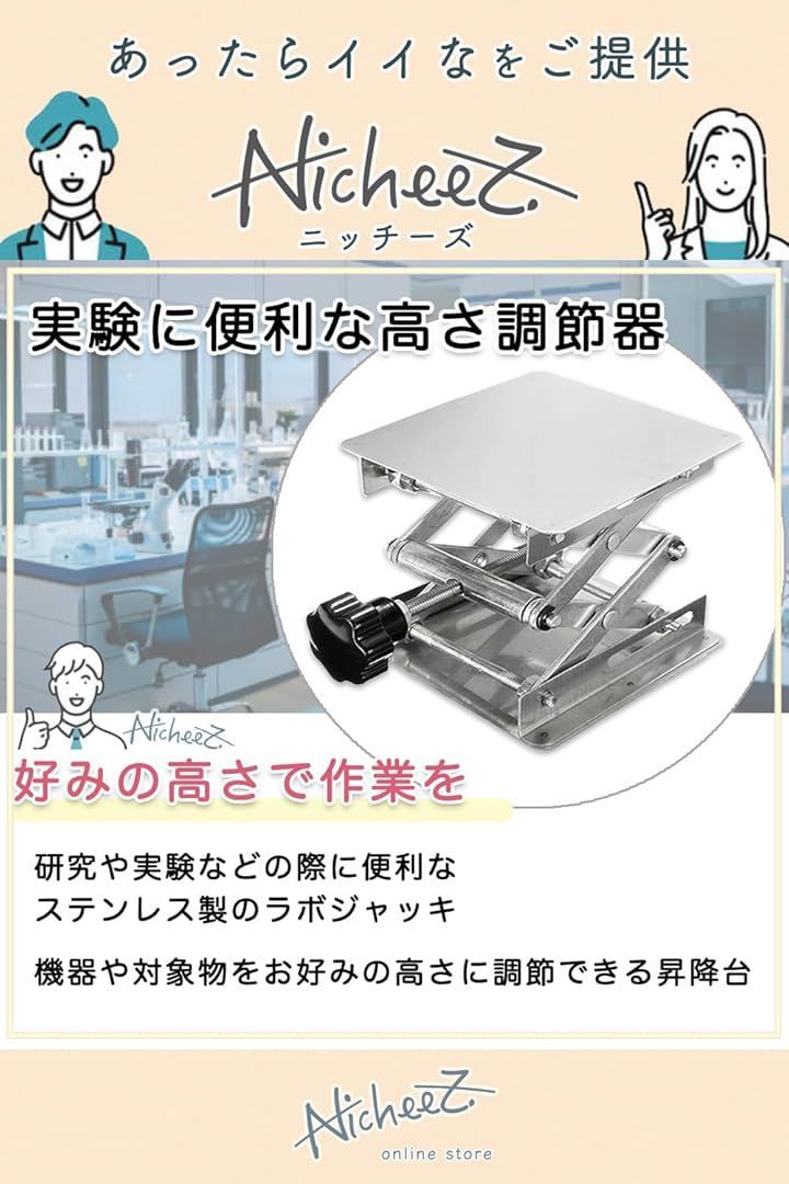 Nicheez ラボジャッキ 実験用 昇降台 作業台 ステンレス (シルバー, 15cmx15cm)