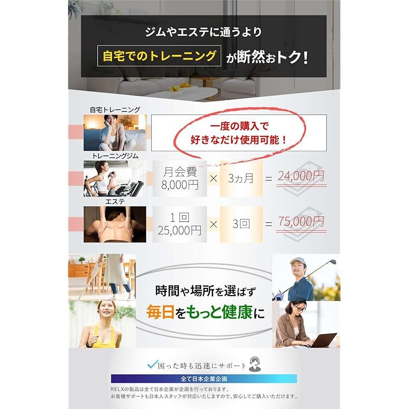 【たった15分で本格エクササイズ RELX(リラクス)EMS BELT】 RELX独自のテクノロジーを集結させたベルト型EMSは、巻くだけでお腹をしっかりホールド。筋肉を集中的に刺激し、お腹周りの筋力トレーニングをサポートします。 EMS腹筋ベルトは、体の外側から電気を与え、意識しなくても筋肉を動かすことが可能に。また、シートタイプより腹部への密着度が高くずれ落ちにくいため、家事や作業、散歩などをしながらご使用いただけます。 ?