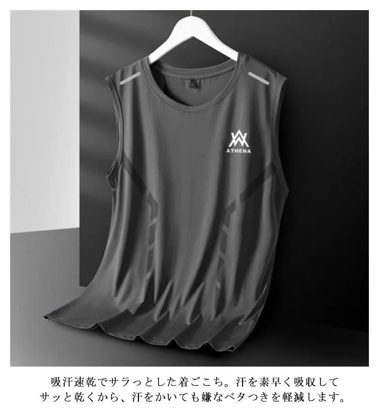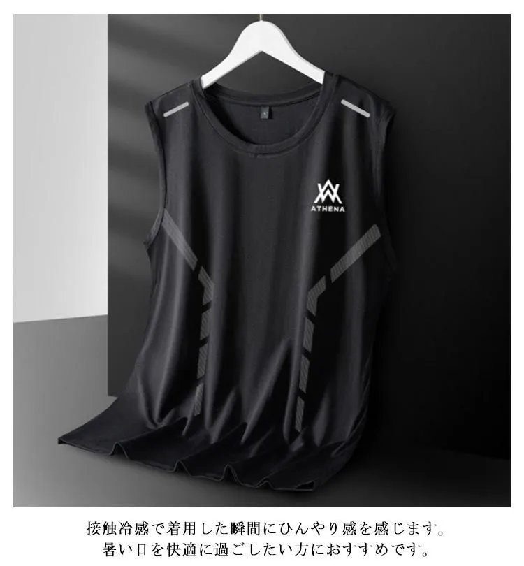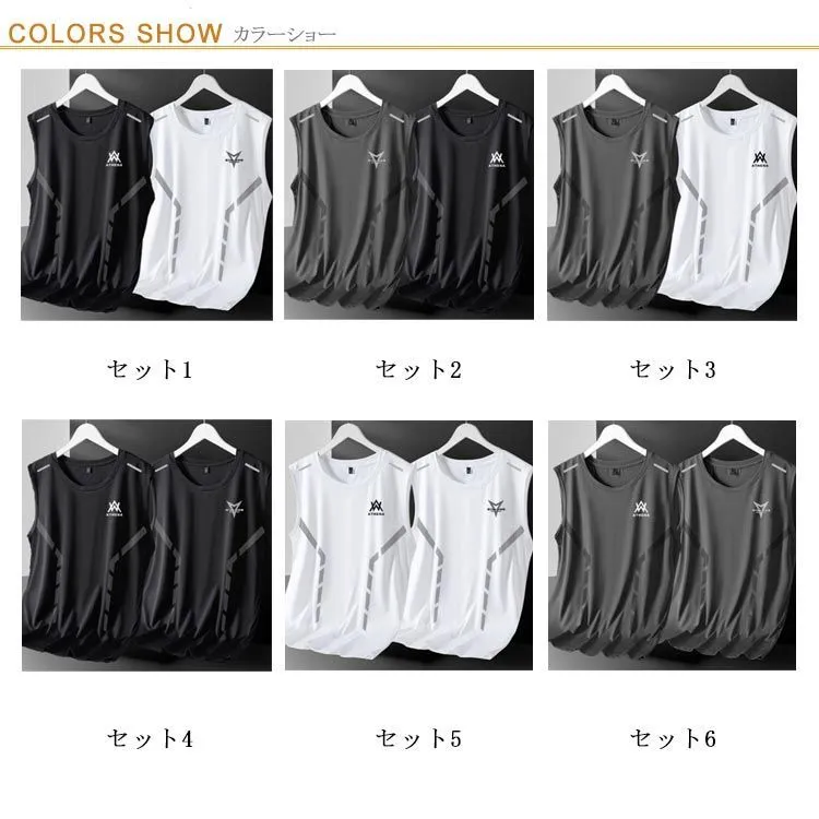 タンクトップ メンズ 2点セット 接触冷感 ノースリーブ スポーツウェア 無地 涼しい 袖なしTシャツ ひんやり トレーニングウェア レイヤード Uネック ジム 筋トレ ランニング トップス 運動着