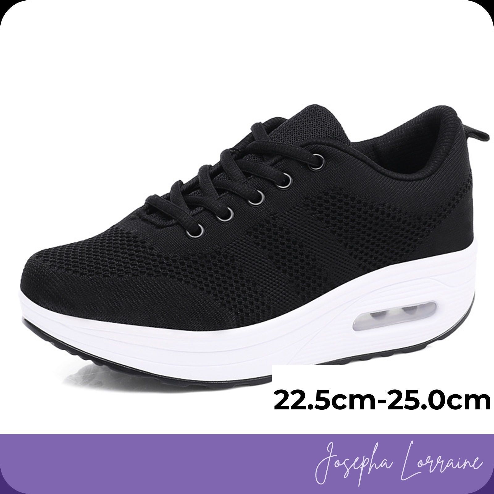 スニーカー 厚底 ウォーキング シューズ レディース ブラックxホワイト 22.5cm 25.0cm