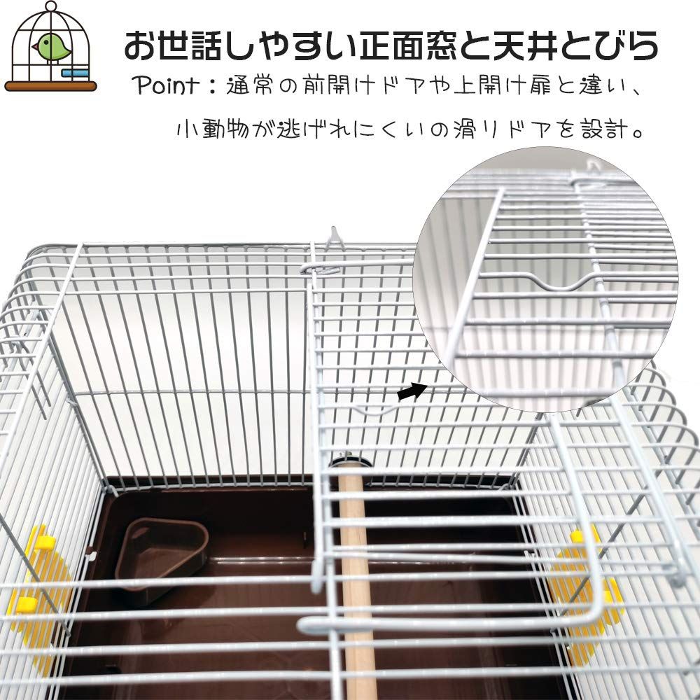 ゆっとり広々とした空間。閉塞感がなく、おもちゃをぶら下げたり水入れを追加したりしても小型インコが余裕に動き回れ、複数飼いにも対応。