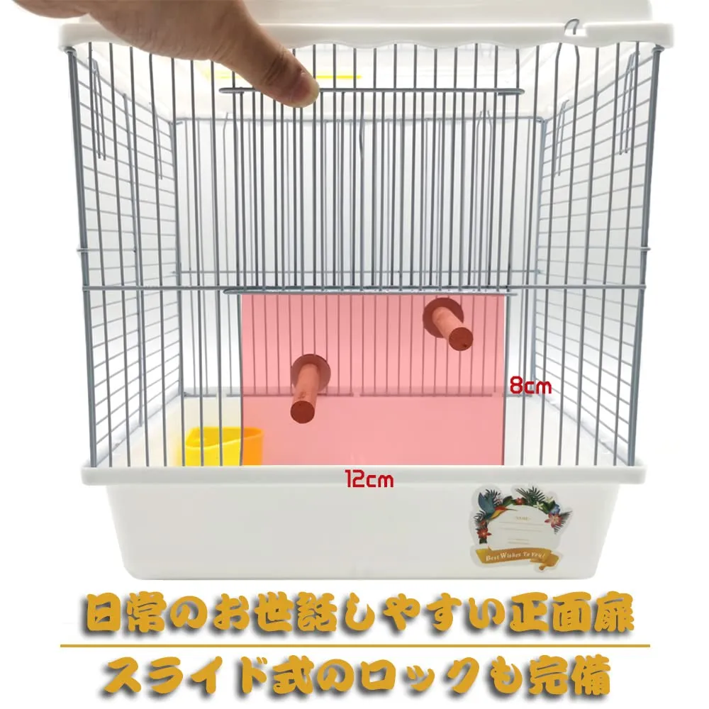 鳥かごは外寸W27×D21×H30cmで、文鳥やキンカチョウなどのフィンチからセキセイインコ、オカメインコなどの小型インコ中型インコまでがゆったり過ごせます。
